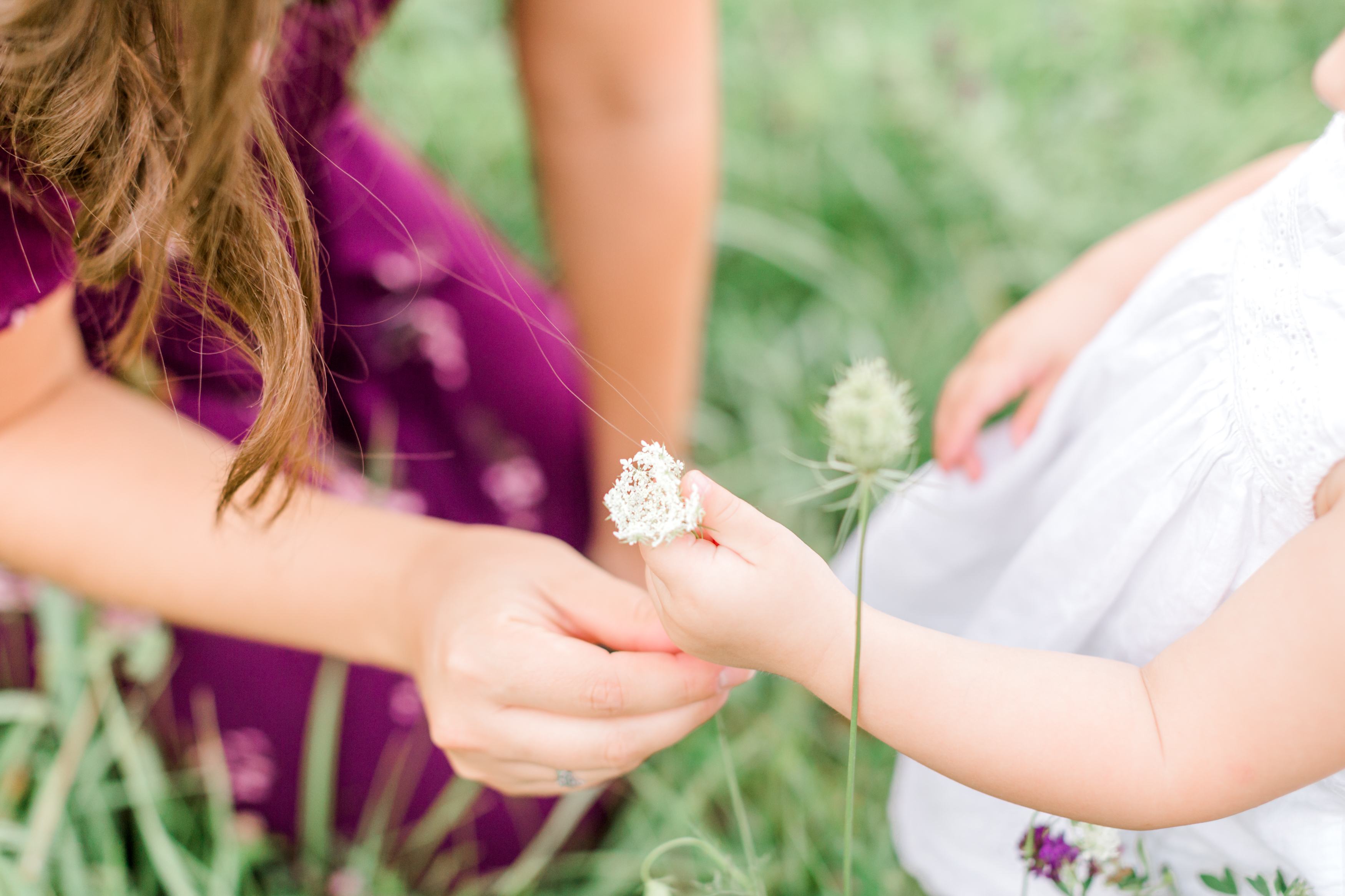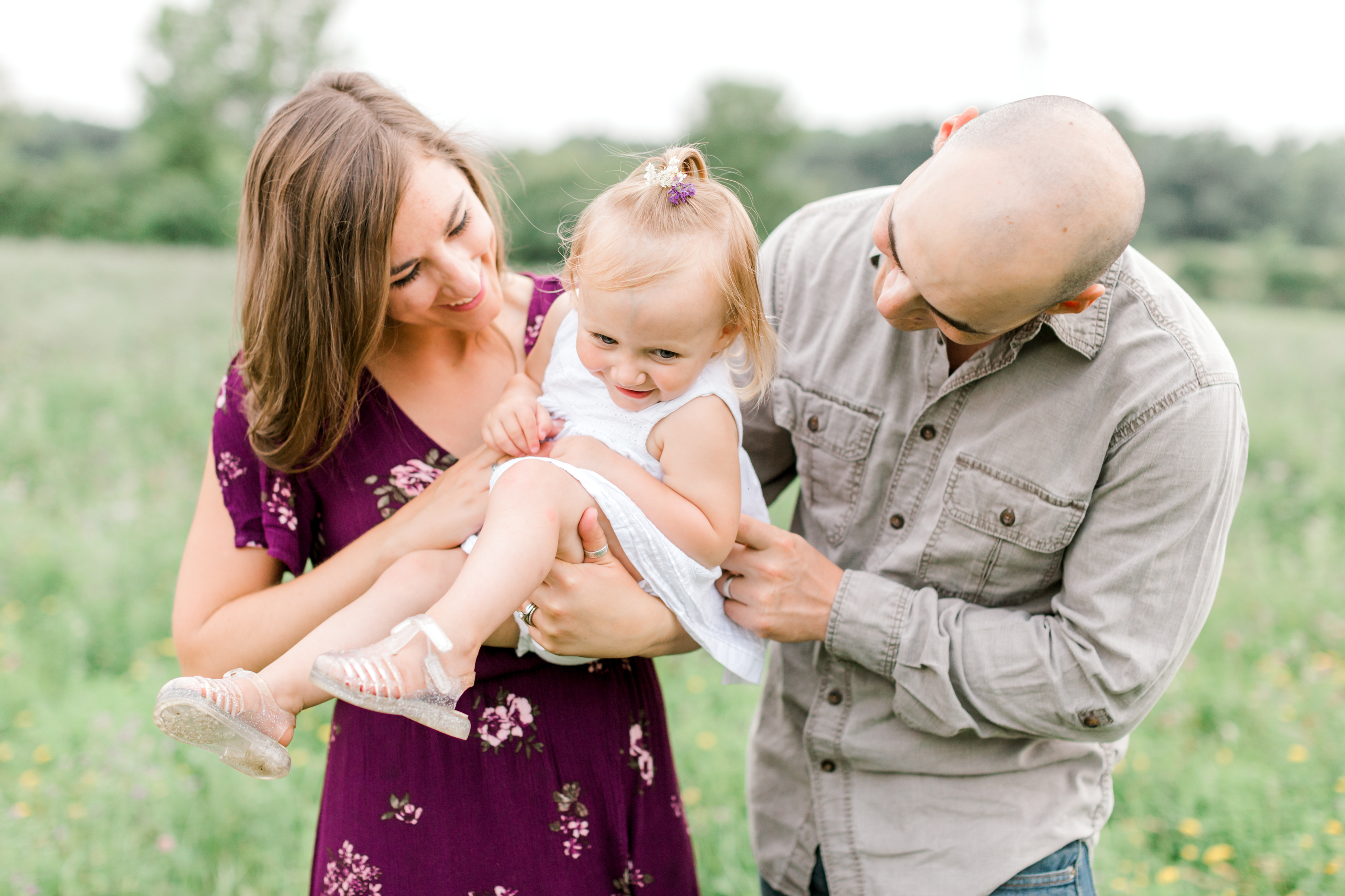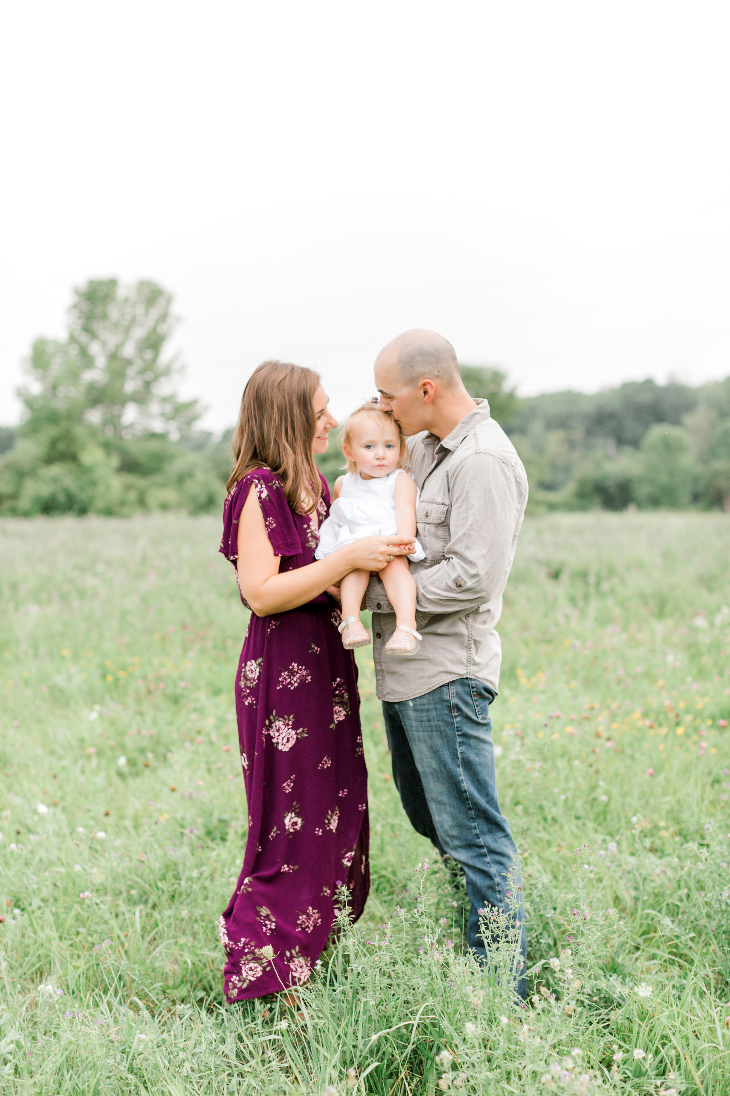 One of the most crucial parts of a photo session is the location. While trying to decide on a location, my family happened to attend a celebration that Meredith and her family were throwing for Josh’s homecoming and Annabelle’s birthday. This party was at Josh’s mom’s home in Muskego and I saw this beautiful field at the back of her property and knew right away that this is where we would do their session!! These beautiful portraits were actually taken right behind Josh’s mom’s house and I couldn’t love this location and family more!
