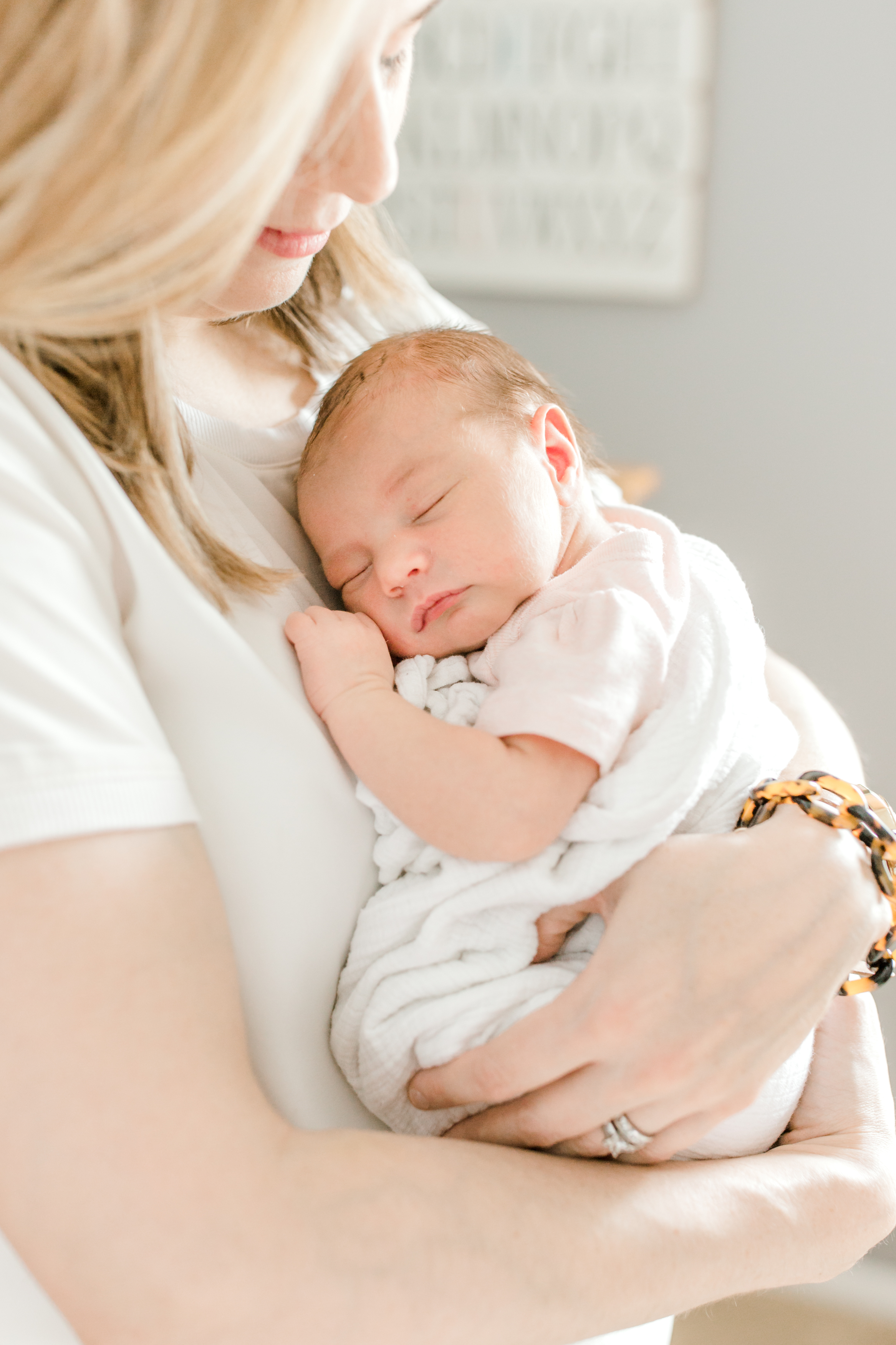 One of my favorite things about newborn sessions is seeing the nursery rooms. Every nursery room is different and it reminds me of how much fun it is to pick out decorations for your little one’s first room. And Paige’s room was absolutely adorable! Marcia had decorated Paige’s nursery in a sweet and soft style; perfect for the first girl of the family. In the corner of the nursery, she had an antique dollhouse that was built as a model of her childhood home. This piece was very special to Marcia and I was so happy to be able to photograph that memory for her of putting that dollhouse in her daughter’s nursery. I can’t believe it, but it is almost time for little Paige’s 6 month session already!!