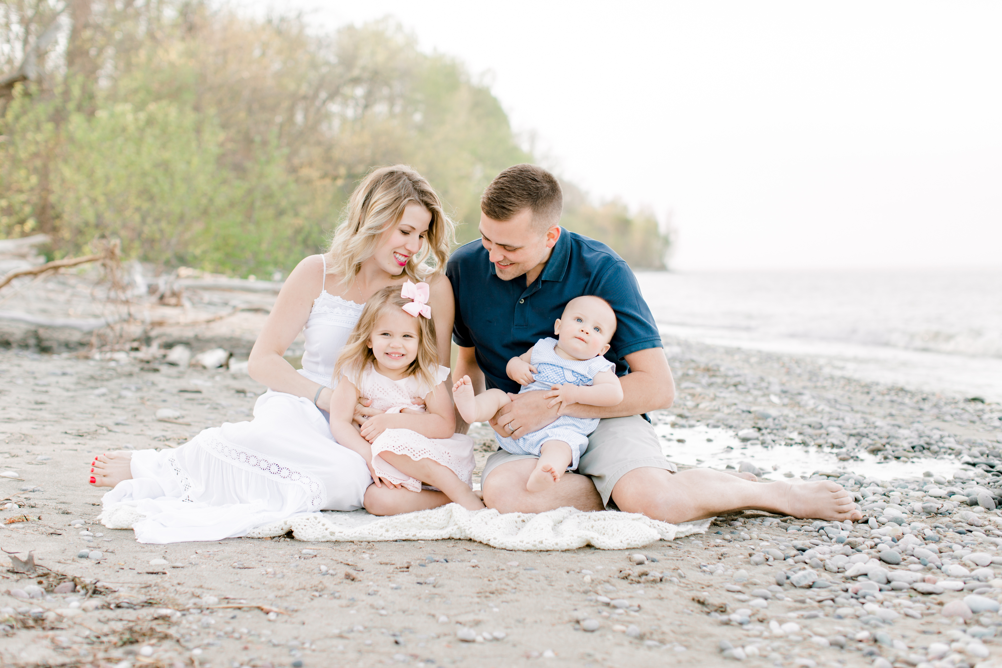 During this session, the two little ones had so much fun exploring the beach and I had a lot of fun chasing them around. Brittany mentioned that Scarlett has never really smiled in any of the family photo sessions they had done in the past, but she was all smiles for me! She loved grabbing the rocks and throwing them into the water, and walking out onto a cement plank that went right into the Lake. And wait until you see how much her little brother loves her; there is a lovely shot of him just staring at her in adoration!