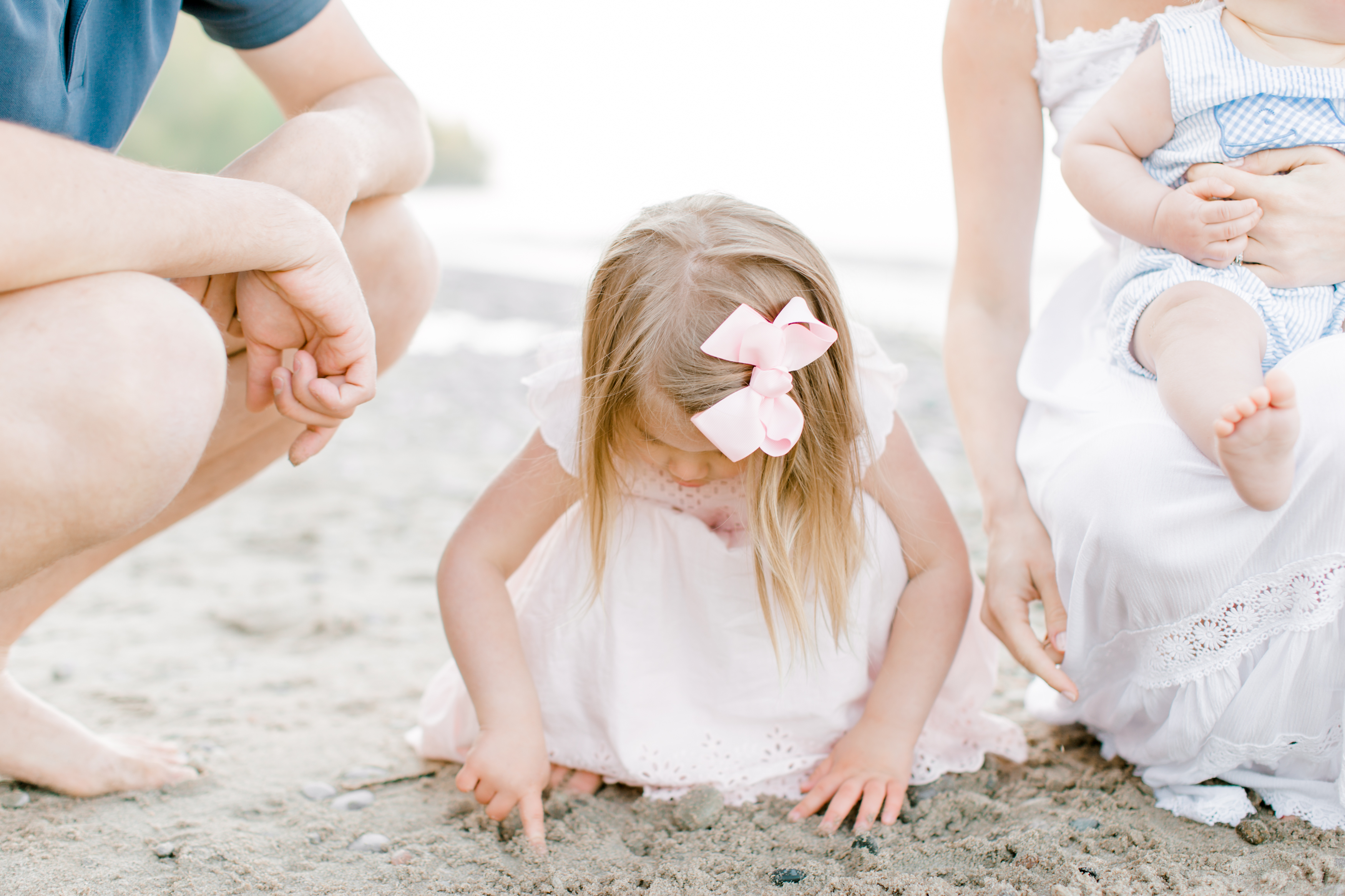 I met the Sands family at Doctor’s Park in Milwaukee for their beach family session. This mom did such a great job at coordinating their wardrobe. I love the soft color palette- it’s absolutely perfect for a beach setting. The colors, both in wardrobe and in location, play a huge role in how the photos look. This session was meant to be bright, clean and beautiful. And I must say, this session was absolutely stunning. Brittany’s dress perfectly flowed in the lake breeze and watching her and TJ play with their little ones in the sand was the perfect way to document memories.