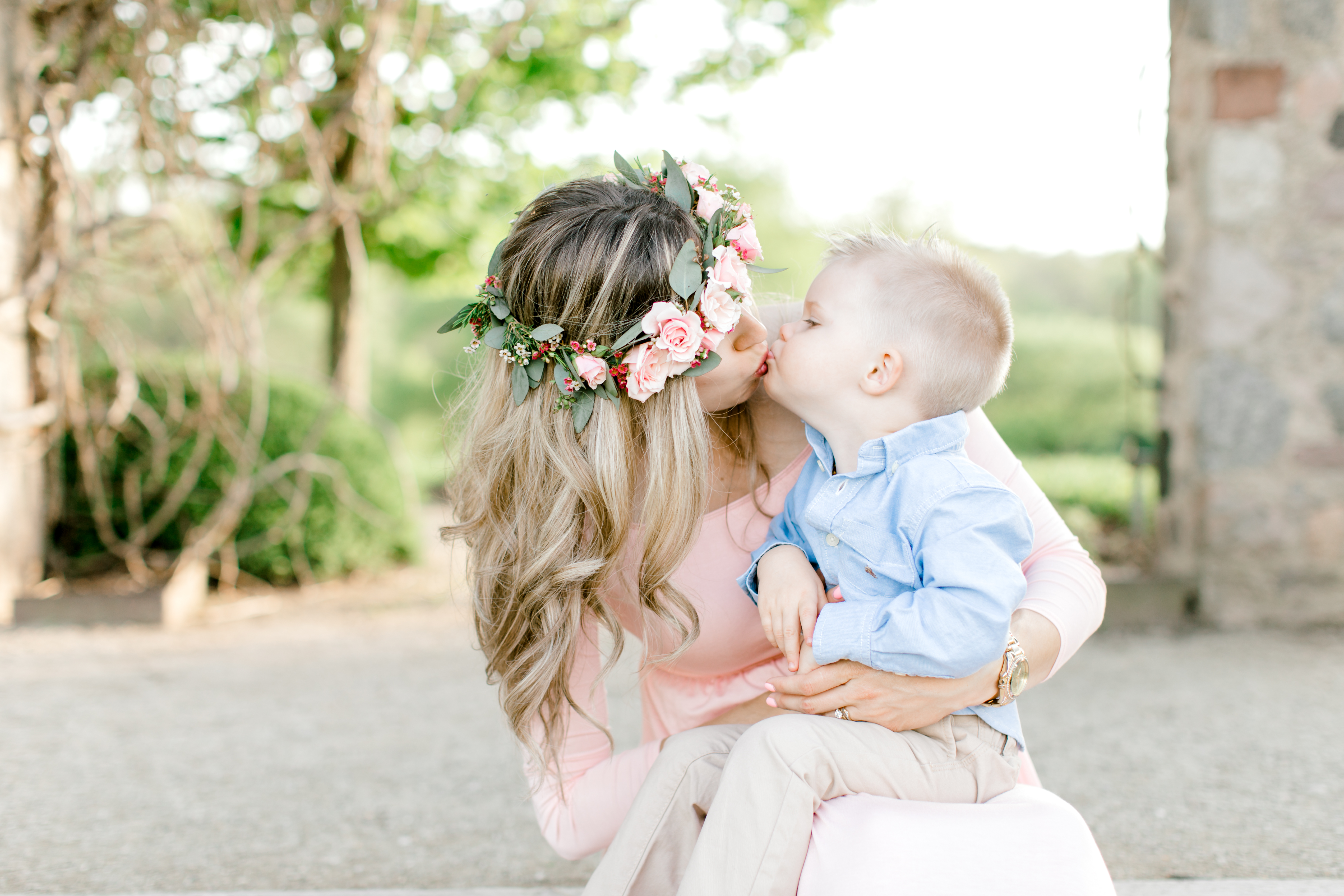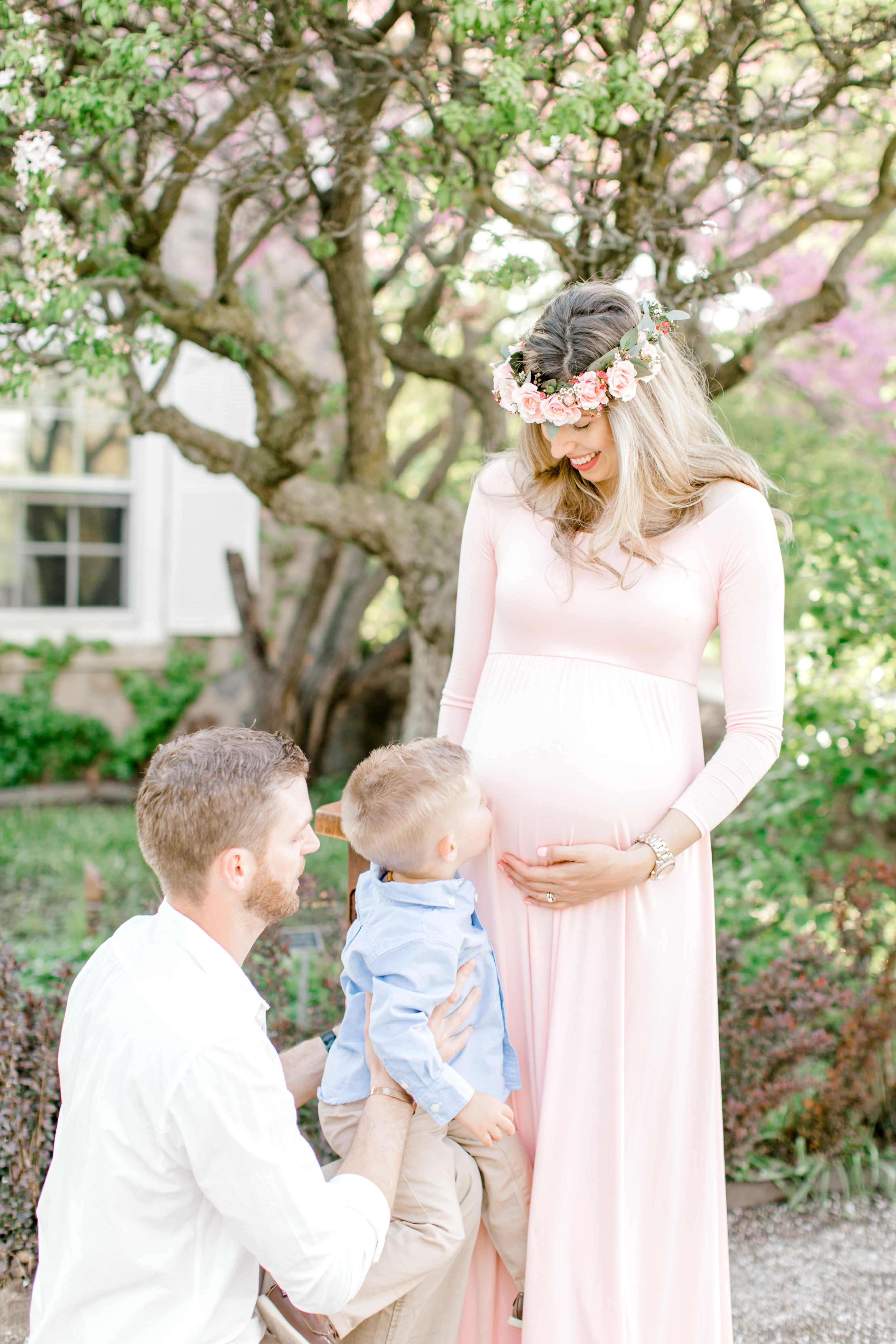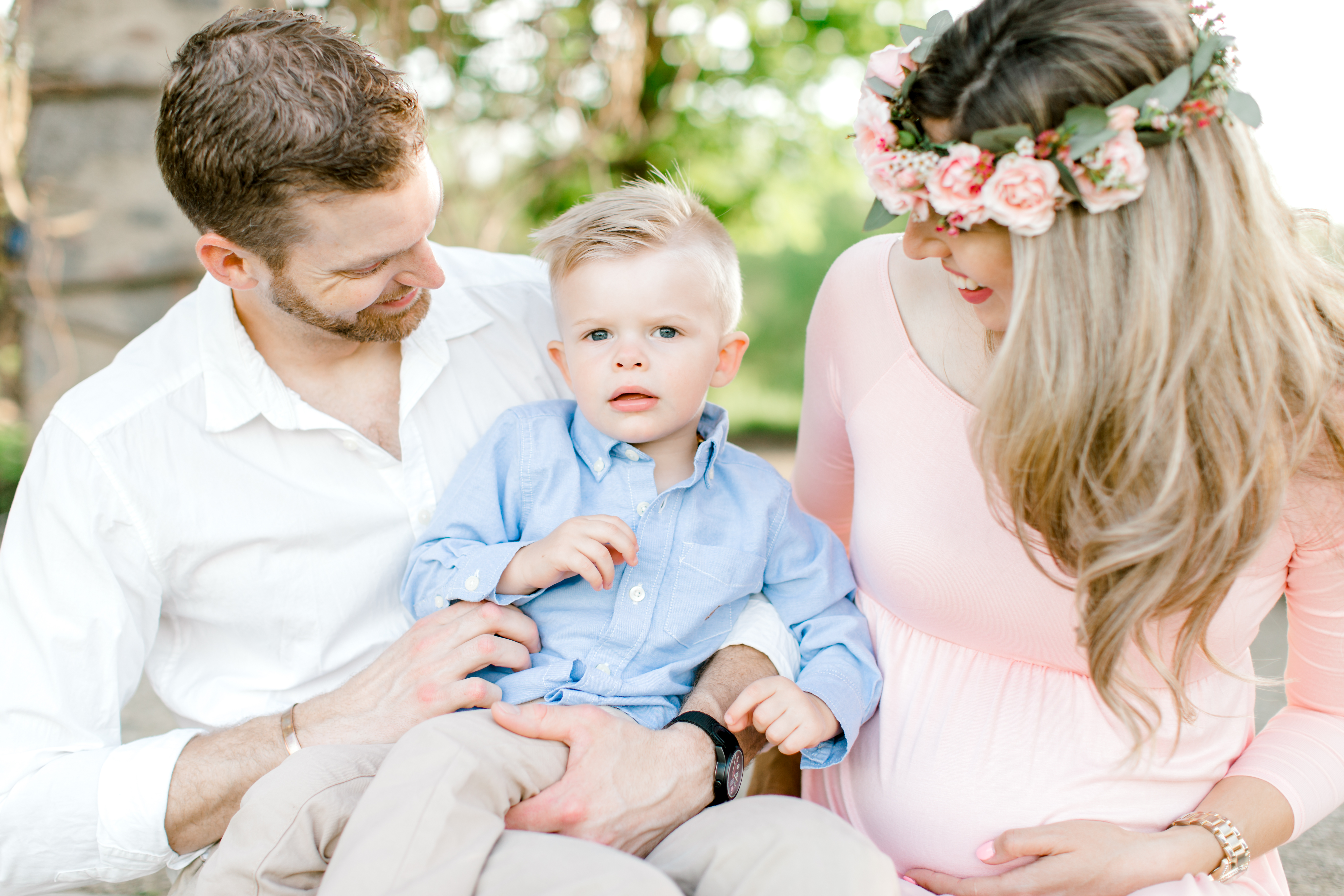 When doing photo sessions outdoors there is always the possibility of rain or bad weather. But luckily, that was not the case for this session. We had beautiful weather that evening, and Grant was the sweetest big brother. I could tell that he was excited to meet his baby sister because he loved to kiss his mom’s belly. And AHHH! all the snuggles in this session definitely showed the love that this family has for each other perfectly. I also photographed this family over the summer when Stella was born for her newborn session, so stay tuned for when that newborn session gets featured on the blog!