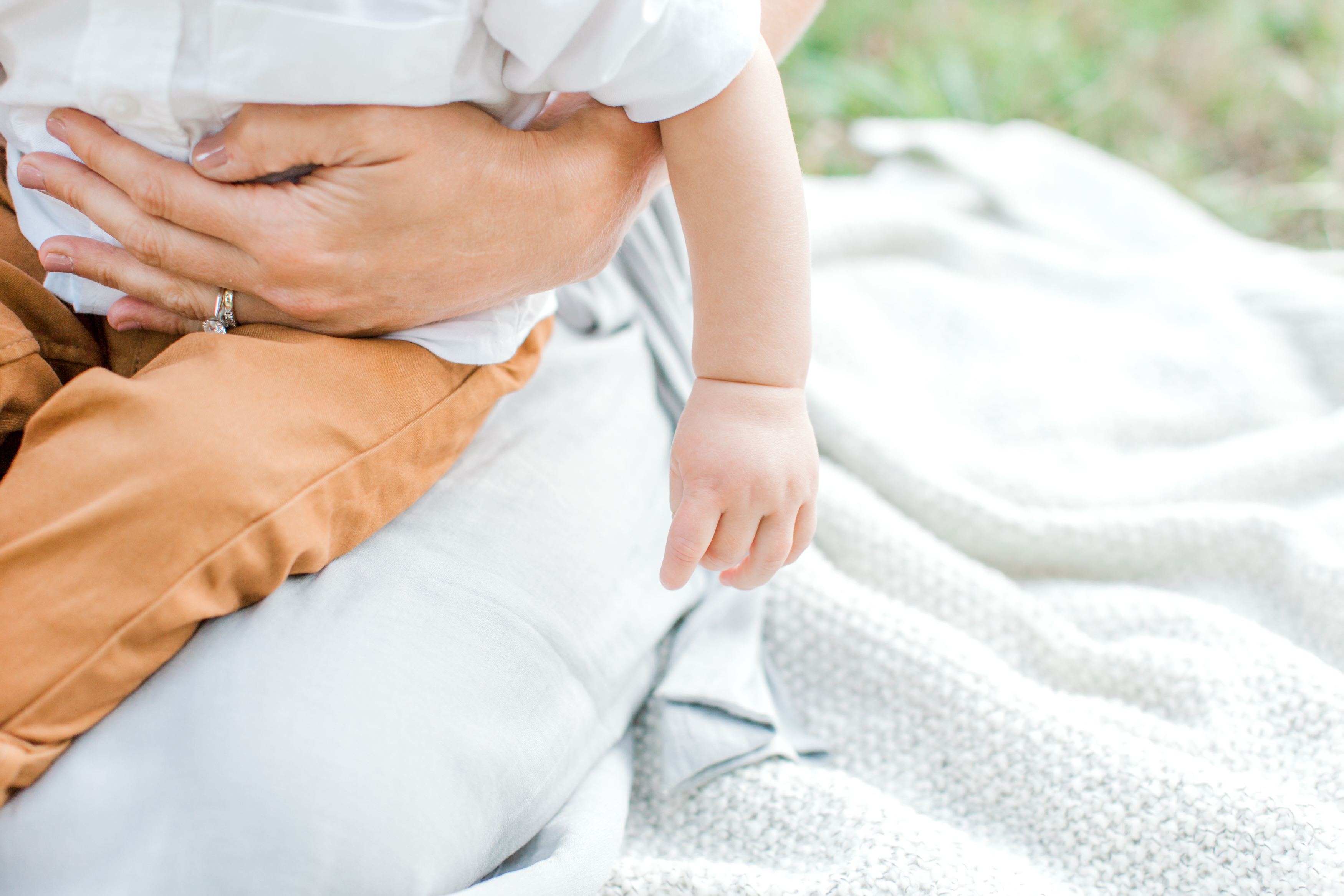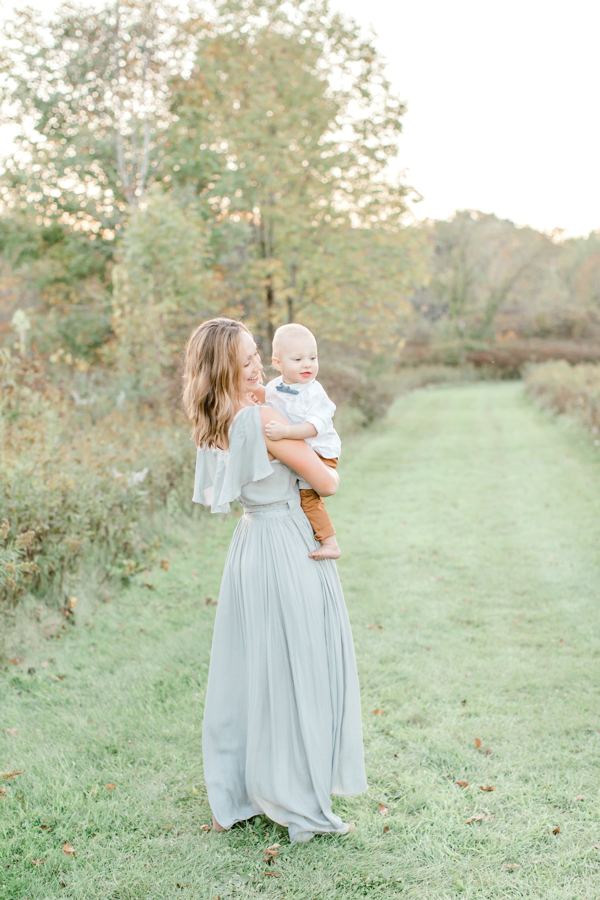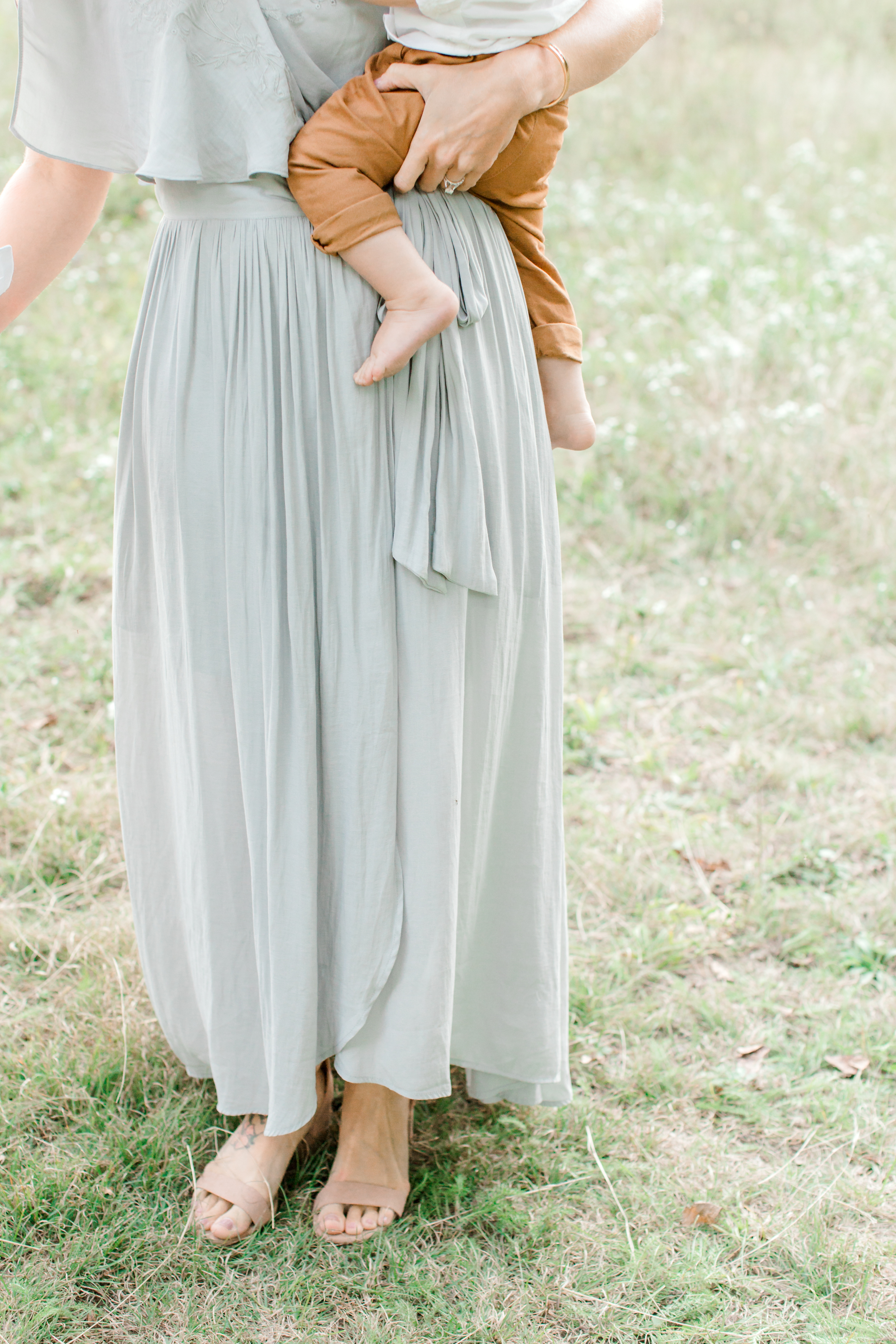 Both location and wardrobe play a huge role in the look and feel of the photos. My clients come to me for a bright, clean, organic and timeless look, so I try to bring several different location ideas to my consultation meetings before the shoot, so my families don’t have to worry about what spot would be perfect. And our client wardrobe makes it so easy for everyone to look amazing! This was one of my favorite locations to shoot at. I love my outdoor sessions because all of the beautiful nature makes for the perfect background. And this location did not disappoint. These photos were taken at the beginning of fall, just in time for a little bit of fall color to poke through, with still plenty of pretty greens! The perfect little fam in the perfect setting with the perfect light!