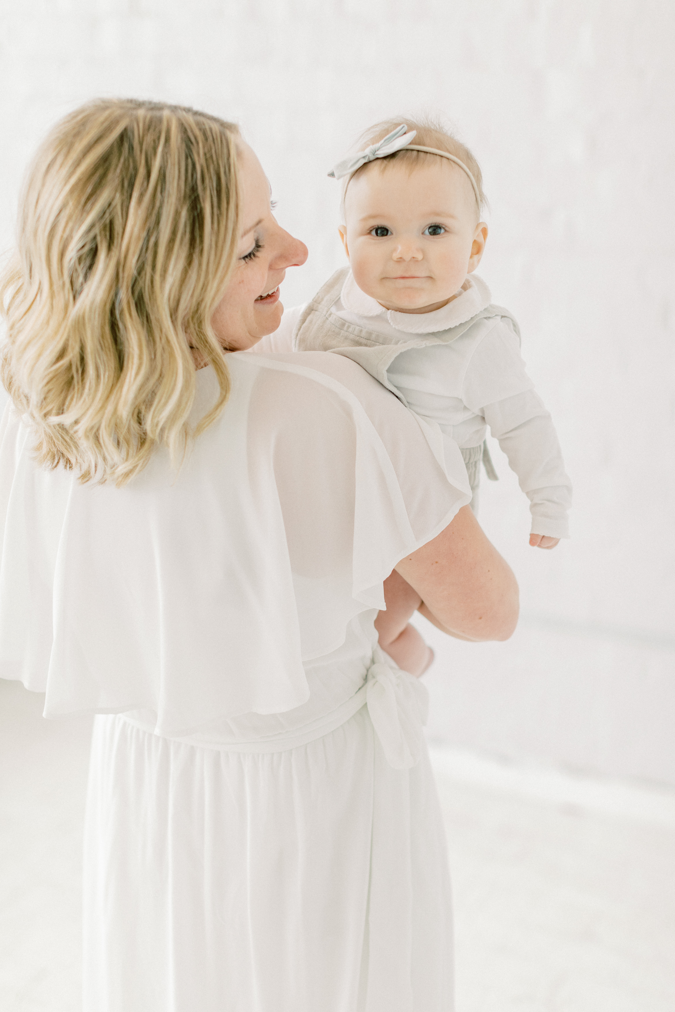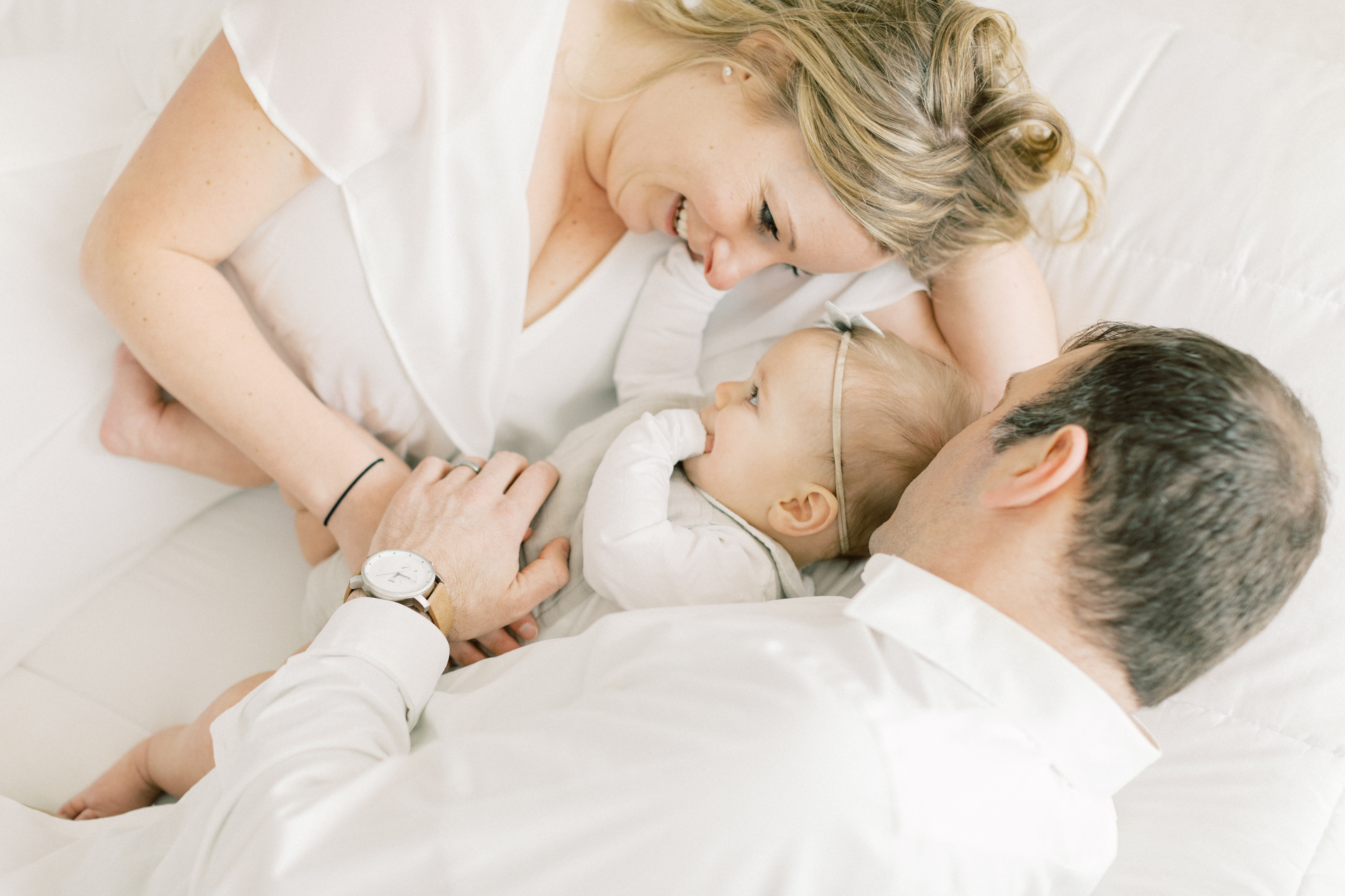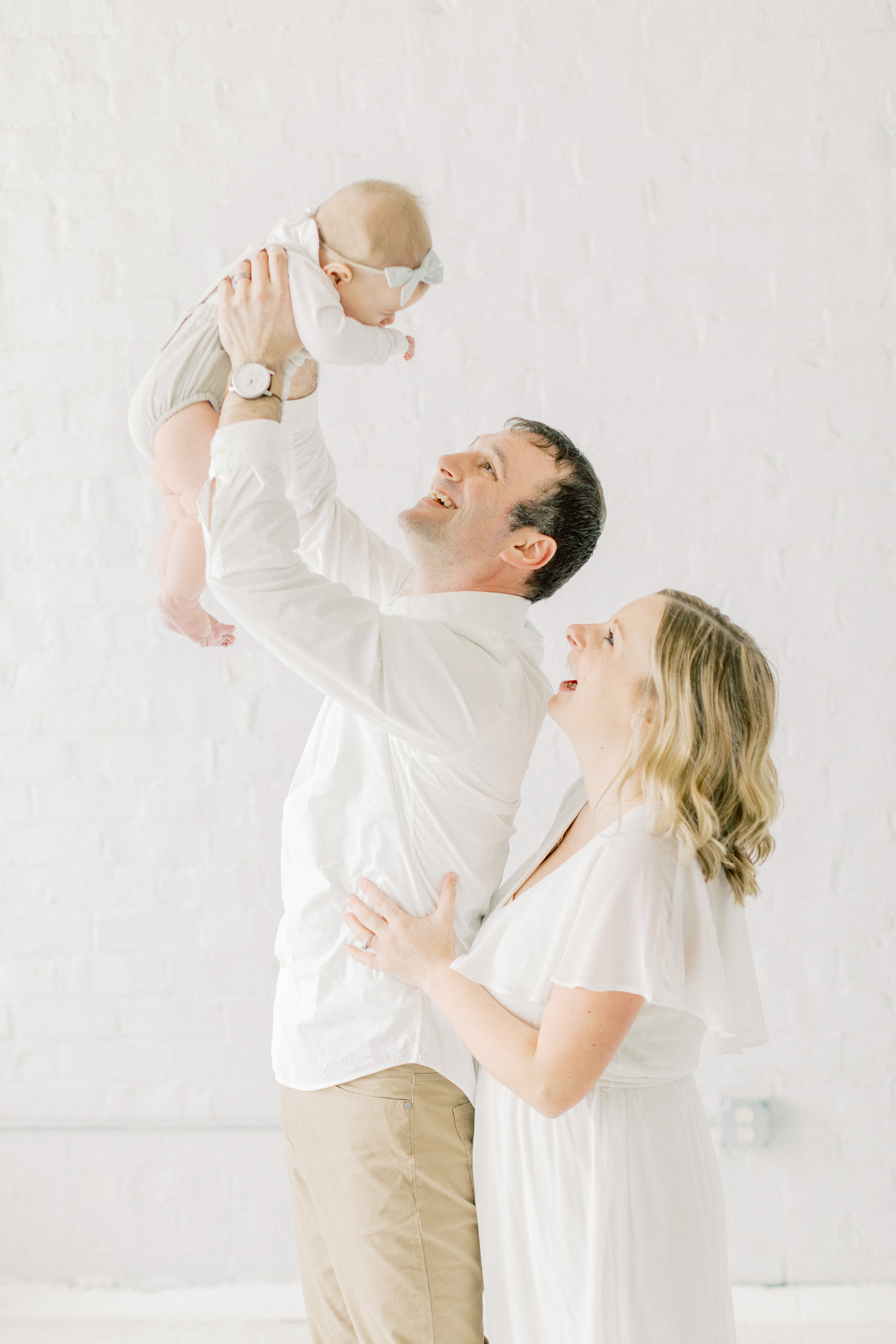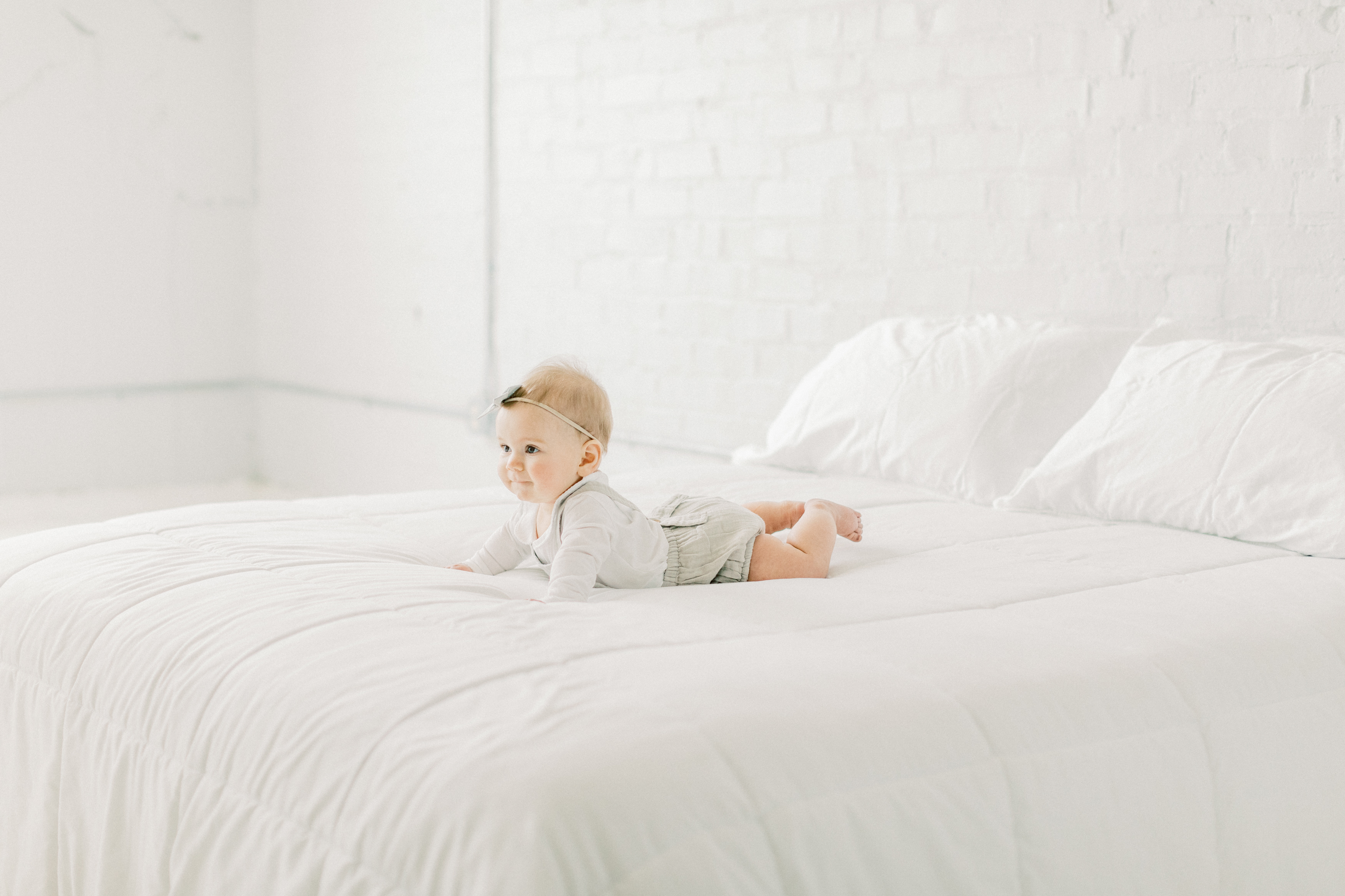 I met the Martell Family at an all-natural light studio in Milwaukee WI, for their 6 month session. I can’t believe a full year has already flown by; it feels like just yesterday I was meeting this sweet family out at Brittany’s family horse farm to take their maternity portraits (Brittany and Jeremy’s Maternity Session), and then watching them bring her home to her darling baby girl nursery (Martell Family Newborn Session). And now this sweet baby has just turned one! I just met up with them last weekend for their one year milestone session (previews coming soon!), so I figured while we wait for the film scans to come back, I could share with you some more from their 6 month session!