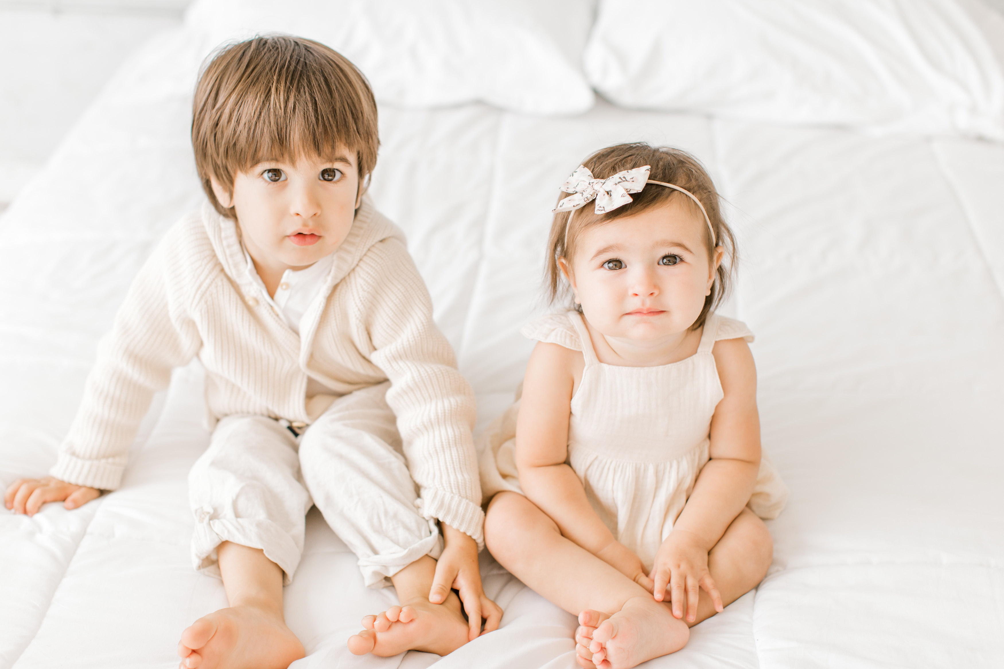 Jen and the kids are all wearing clothing from our client wardrobe, which is available to all of our clients! I love being able to provide my clients with the opportunity to wear my selected wardrobe because for most of my clients the two most stressful things are wardrobe and location. I wanted to take some of the stress off of my client’s shoulders and to make the process easier for them. And OMG!! Jen and her kids looked stunning in these wardrobe pieces. The neutral color pallet looked perfect with the space and the natural lighting.