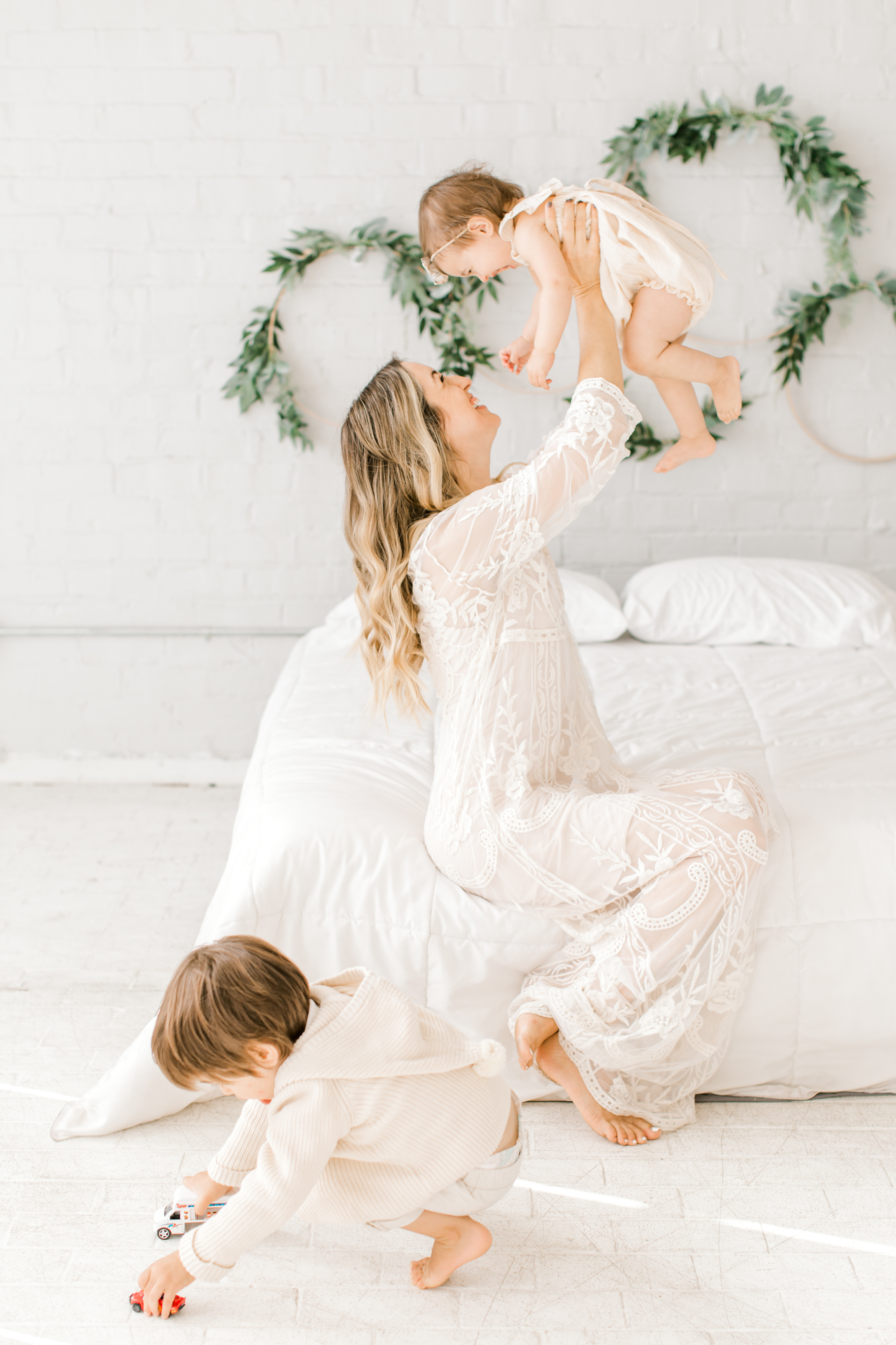 I met the sweet Holt family of four at this all white, natural light studio in Milwaukee for their family session. Jen is just such a sweet and darling mom- you can tell just how much she loves her kids! She loves spending her days with her little ones as a stay at home mom and blogger. Check out her blog: The Holts at Home. Little Poppy was probably the star of this show though- she was such a laid back and happy baby! And, her big brother absolutely adored her. All the hugs, kisses, snuggles, and giggles, showed how much this family loves each other.