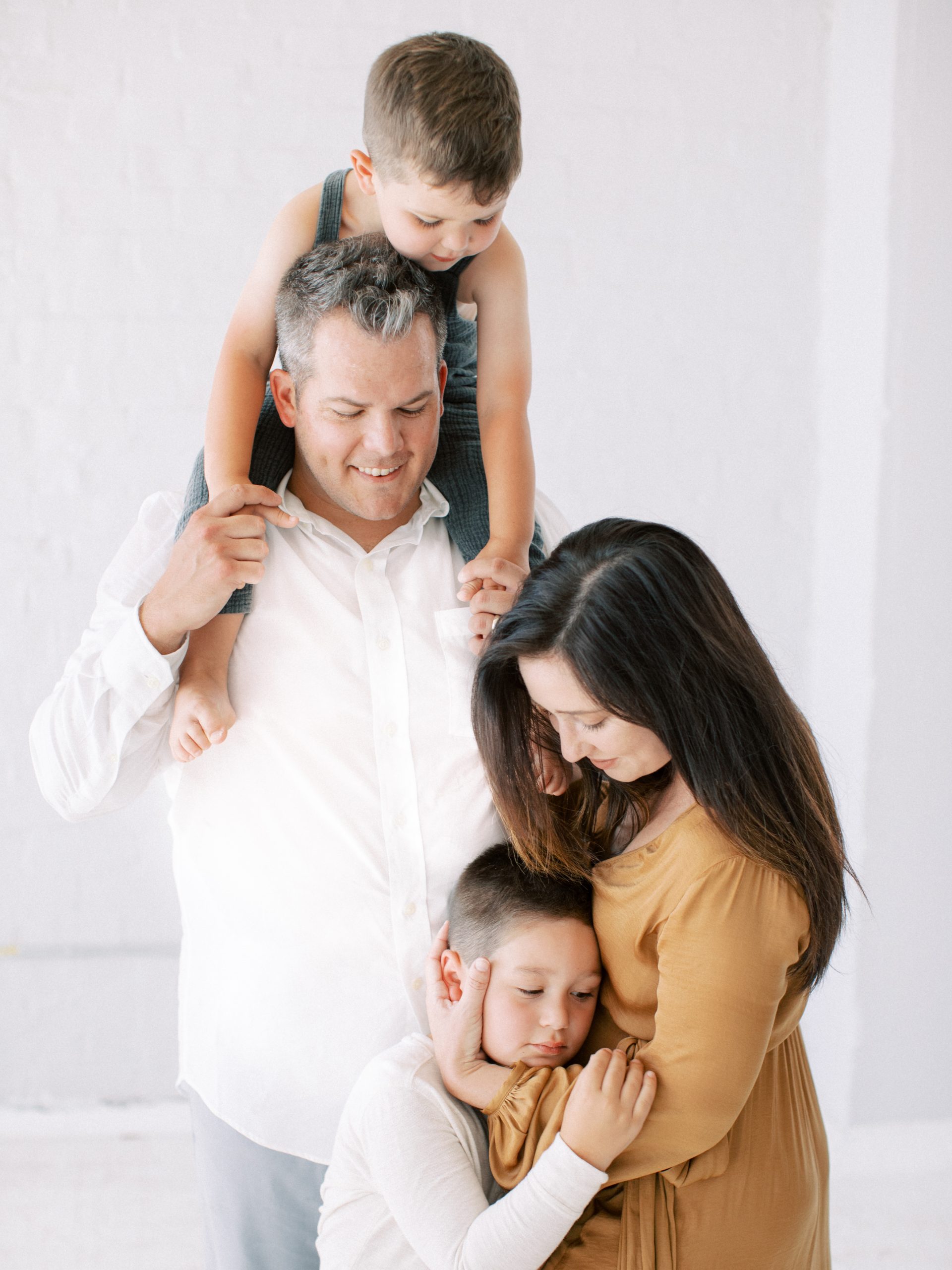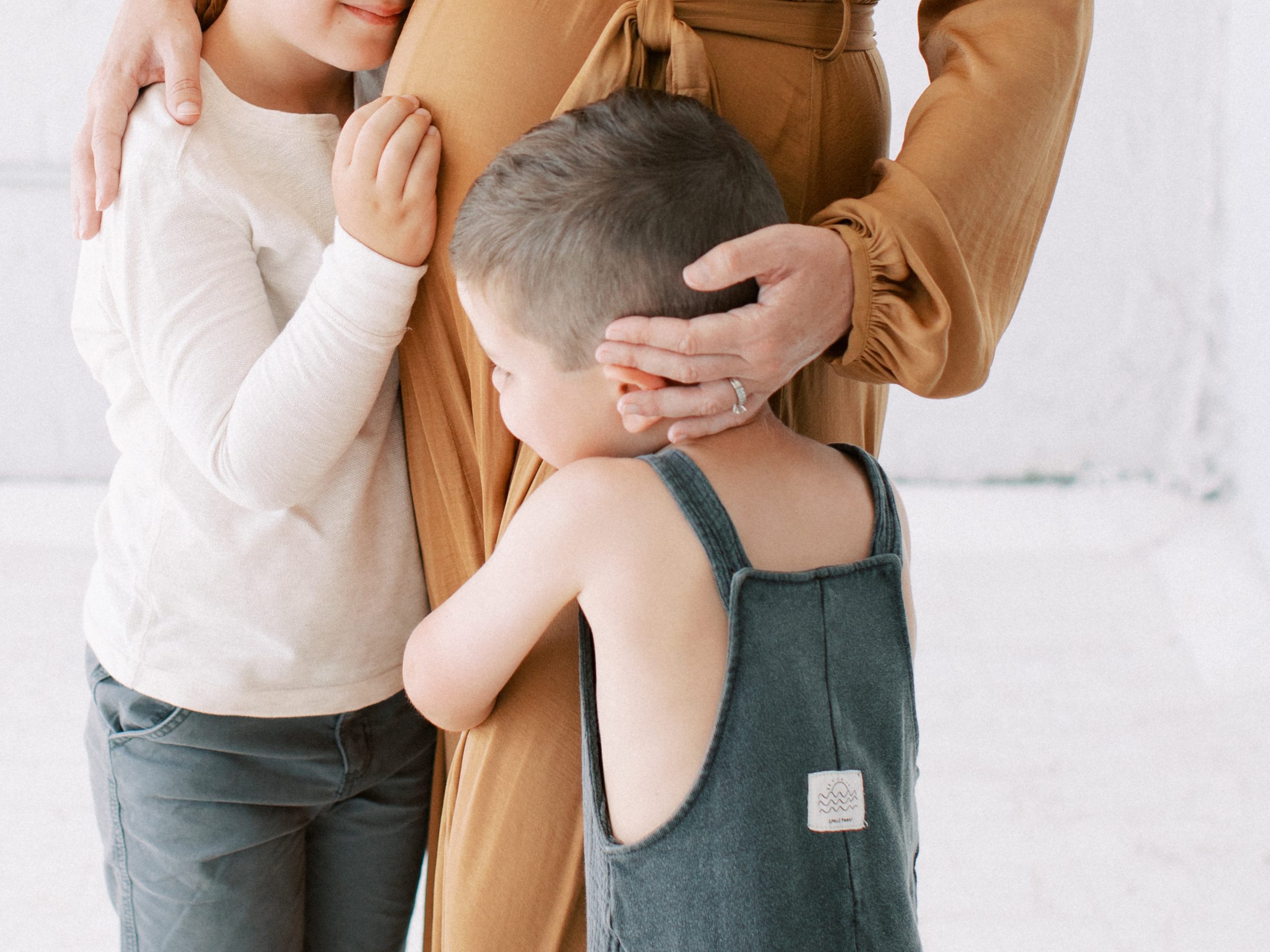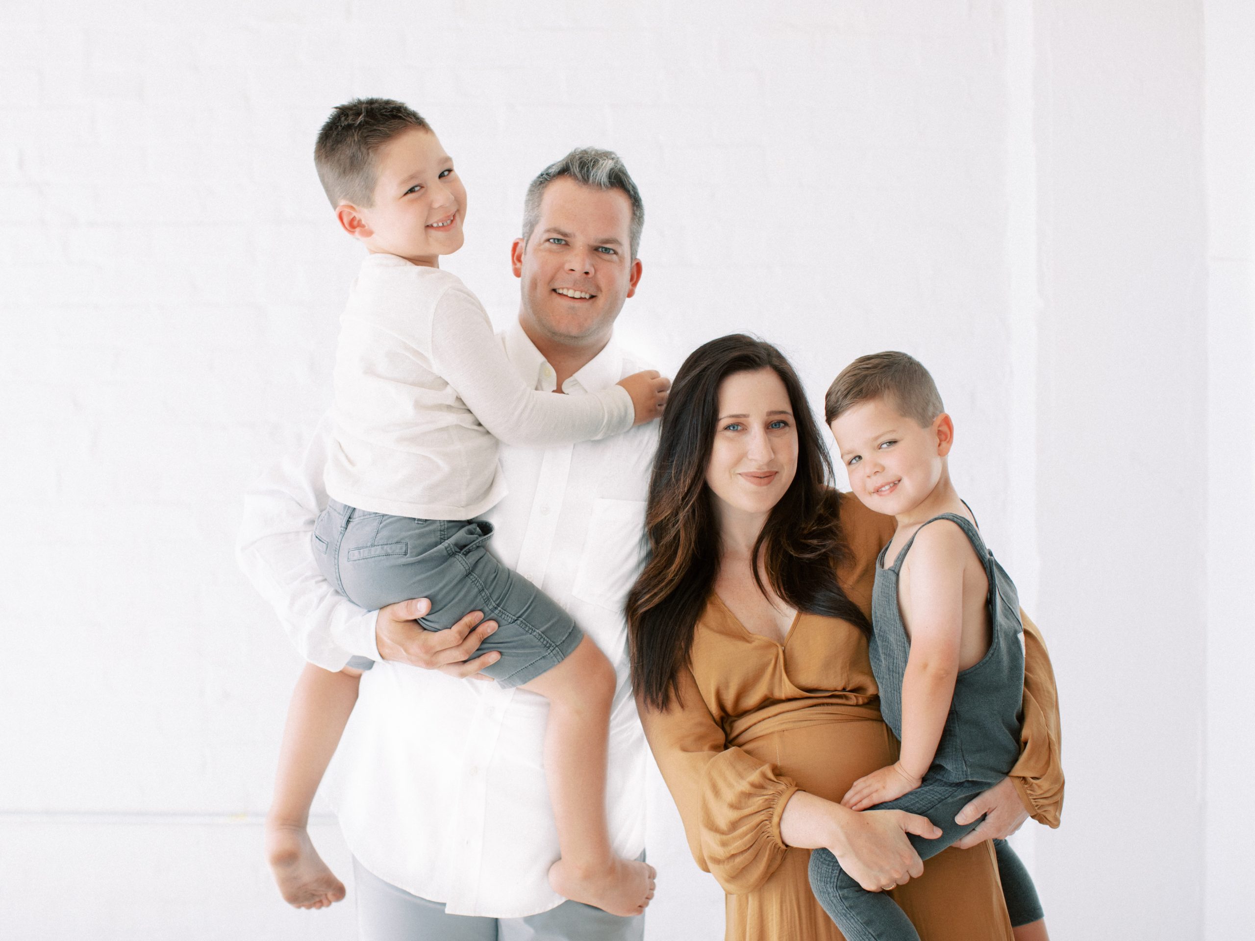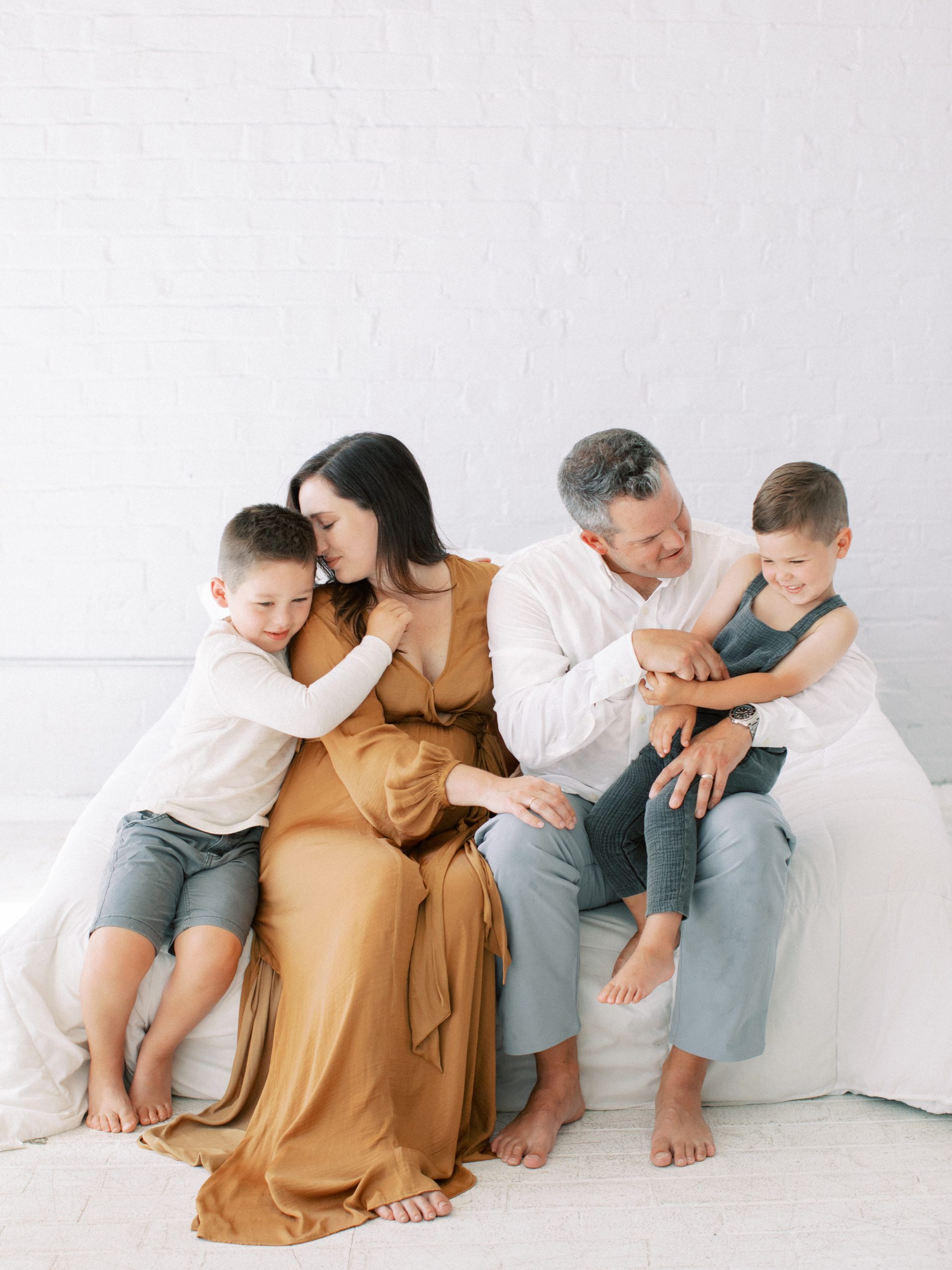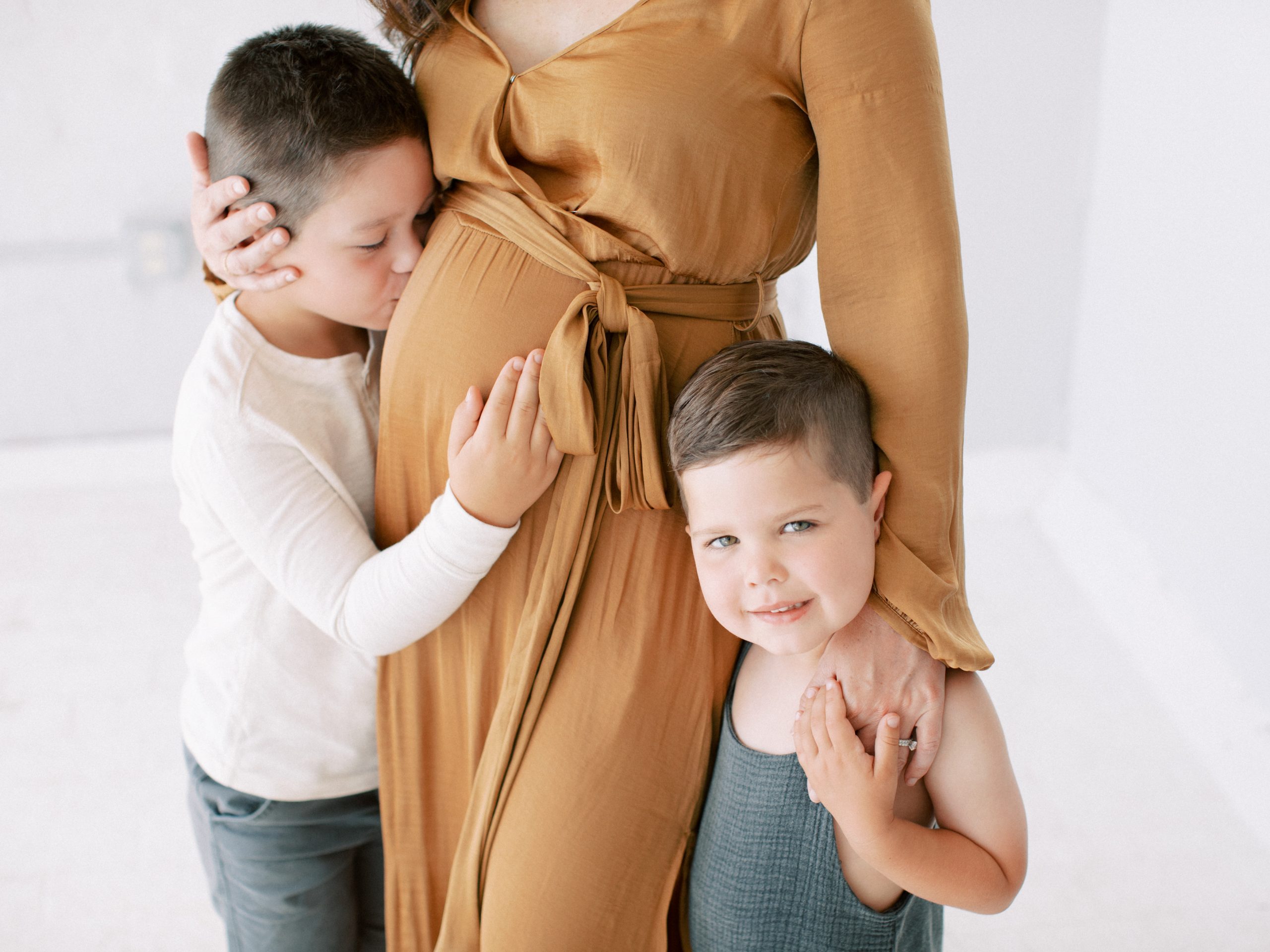 Audrey selected the most beautiful dress for her maternity session. The gold dress she selected from the wardrobe accented her stunning feminine features, and of course, brought perfect focus to her adorable baby bump! All client wardrobe pieces are available to all of our clients. Her two boys were a dream to work with; their excitement for having another sibling was absolutely contagious! And Hampton in a romper was almost too cute for my heart to bare!