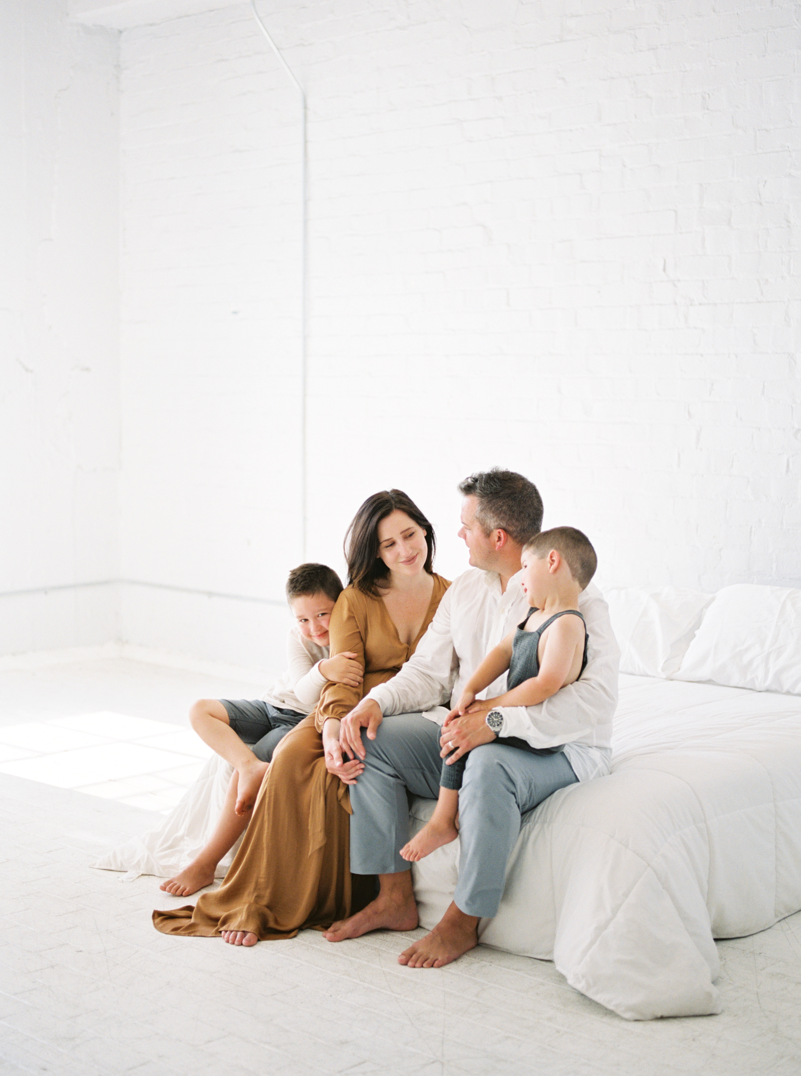 I’ll help you select the perfect outfits from the client wardrobe so you don’t have to worry about trying to coordinate everyone- our pieces are feminine, timeless, and high end name brands. We’ll plan out all of the details and discuss your artwork preferences at your styling appointment as well so I can shoot accordingly. Then we’ll have a relaxed and fun session together either in your home, on the beach, in a pretty grassy field, or in the studio. Three weeks later, we’ll meet up to go through all of your images and I will custom design a gallery wall or album that is perfect for your home. I take care of all of the framing and design work for you and four to six weeks later, your heirloom quality artwork will be ready to display in your home.
