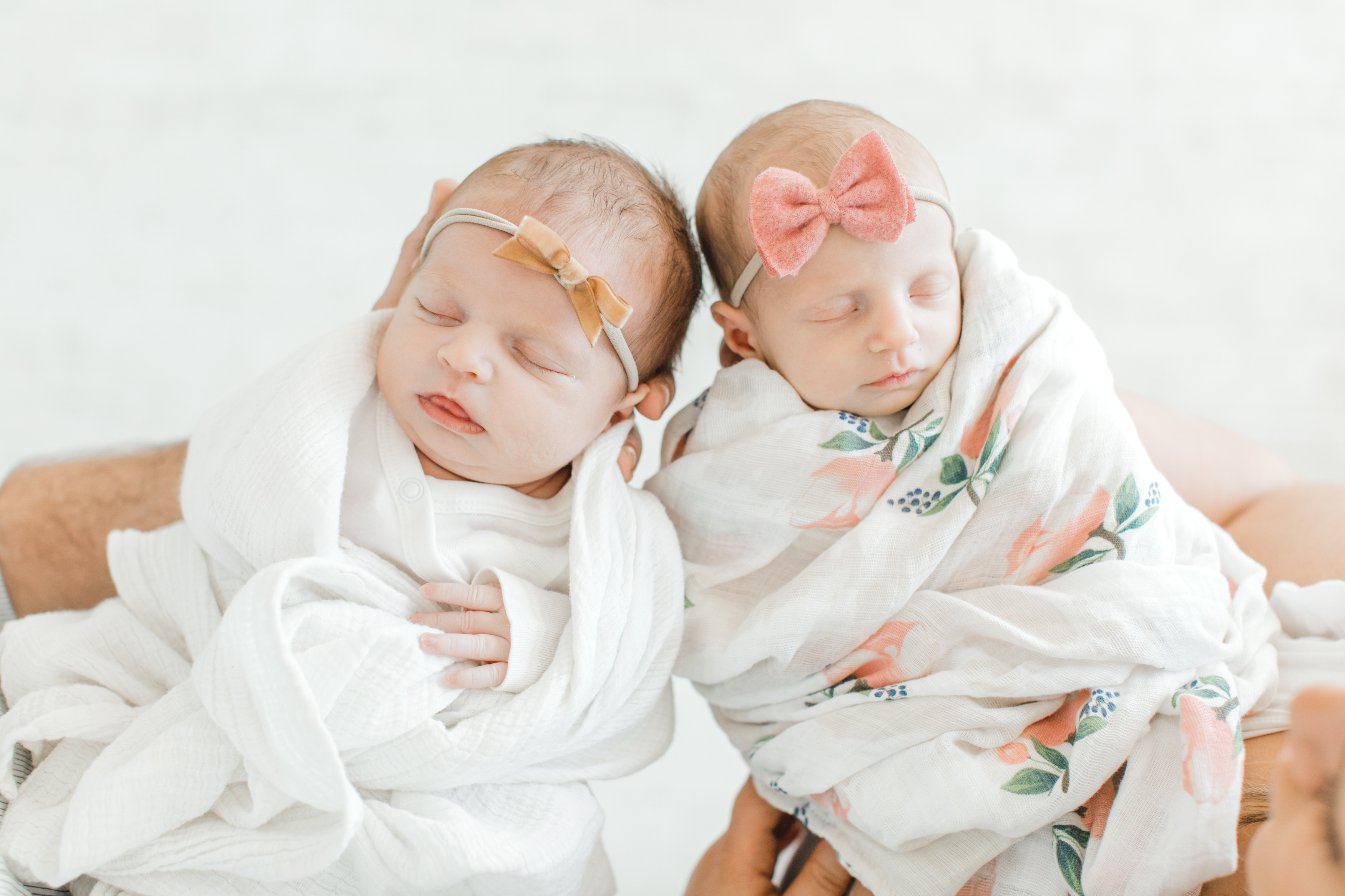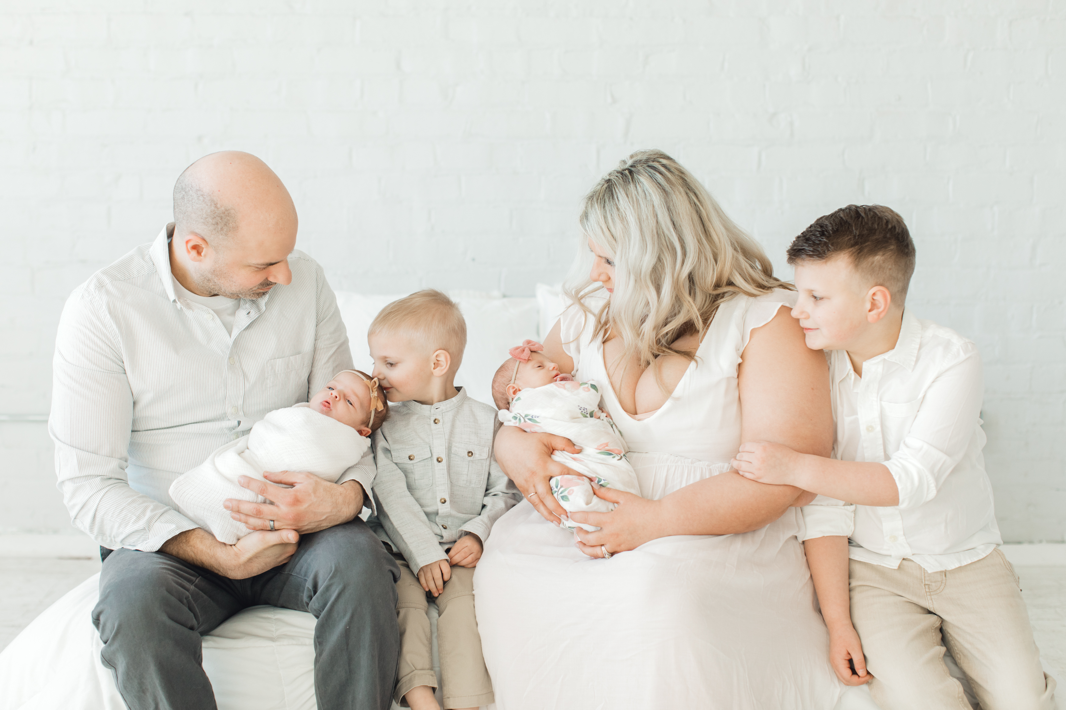 Alexandra was the most beautiful mom and her love for her sweet girls was so evident throughout her session! Eden and Eloise also had so much love coming from their big brothers! Carson loved to hold the girls, and Max loved to give them kisses on their tiny heads. These twin girls are going to have so much love and support from their family. At the end of the session, Alexandra picked out the most precious matching pink linen albums for her baby girls as an heirloom keepsake of their newborn portraits! (scroll to the end of the post to see her beautiful linen albums)!
