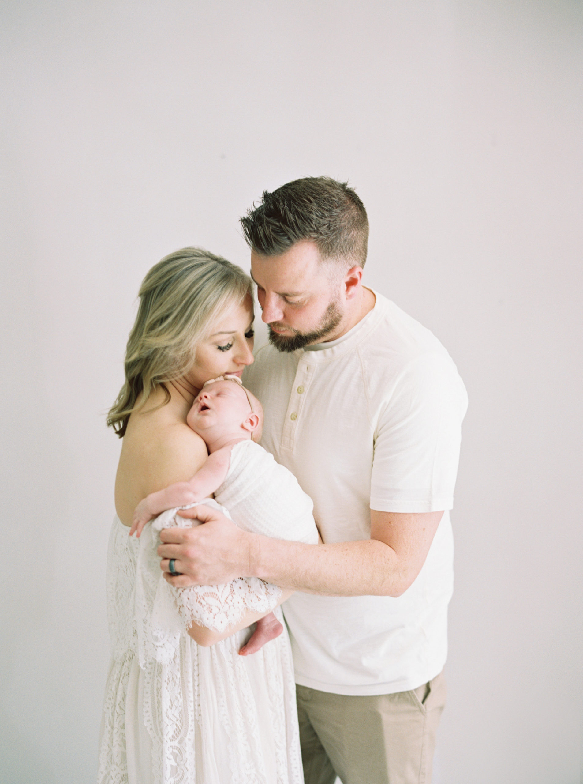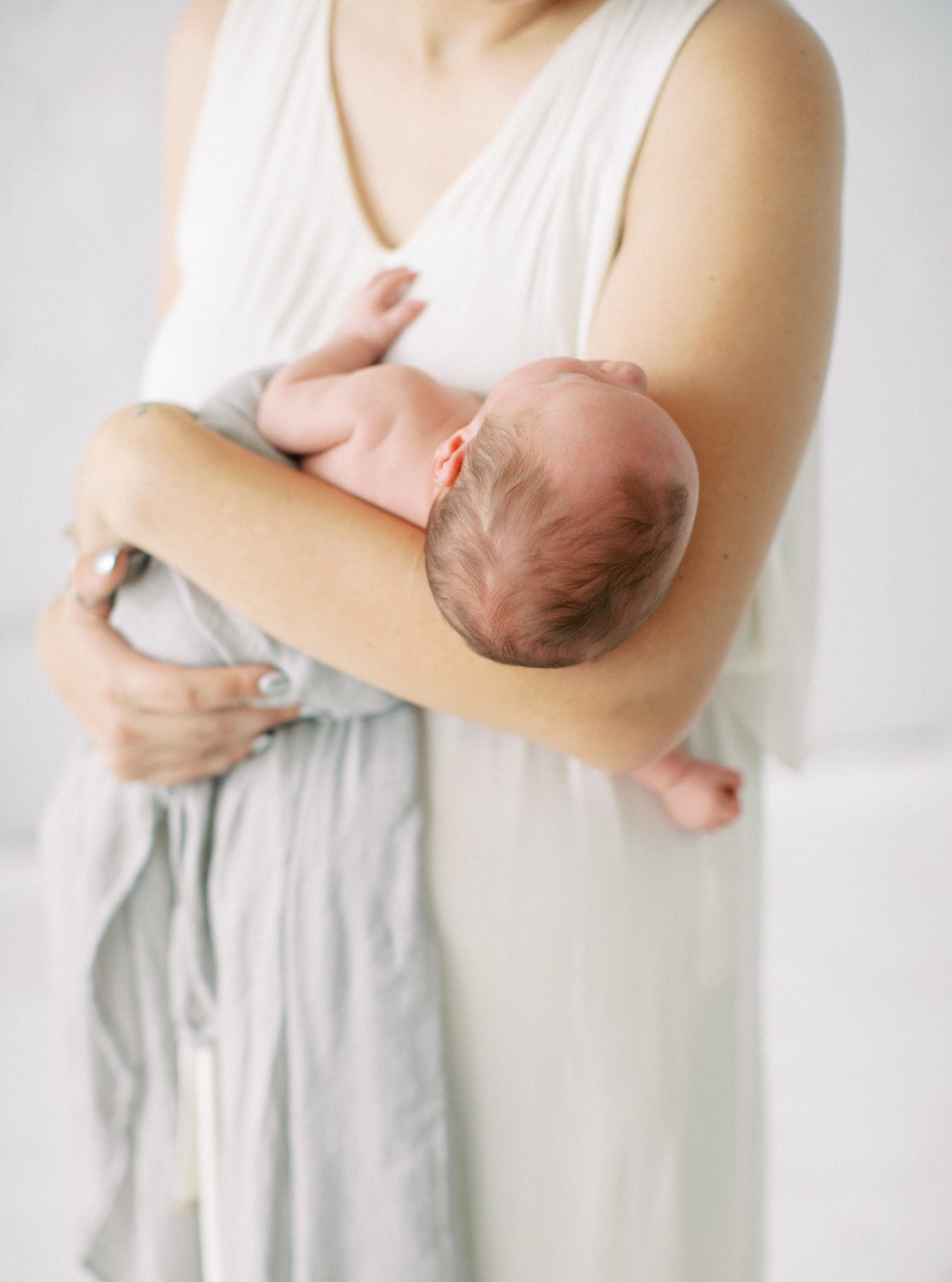 There are a few main styles to consider when it comes to the way an artist edits their imagery- airy, filmy, true to life, colorful, contrasty, moody. You should think about the way you want your family portrayed, the style that will feel right when you look back years from now; choose something that evokes the right emotions within you. For us, this means we want something that will remain timeless regardless of trends. We want to create imagery that looks the way you want your memories to feel. And that is why we shoot film (yes, old school rolls of film), and stay true to natural coloring with a nice bright and clean aesthetic. While there are some artists who excel at creating moody images with deep shadows and moody tones, this isn’t the feel that we prefer for newborn sessions- in our mind, those newborn days should be remembered as a bright spot in your life, not as a dark patch. When the moody trend comes and goes, our images will remain timeless forever.