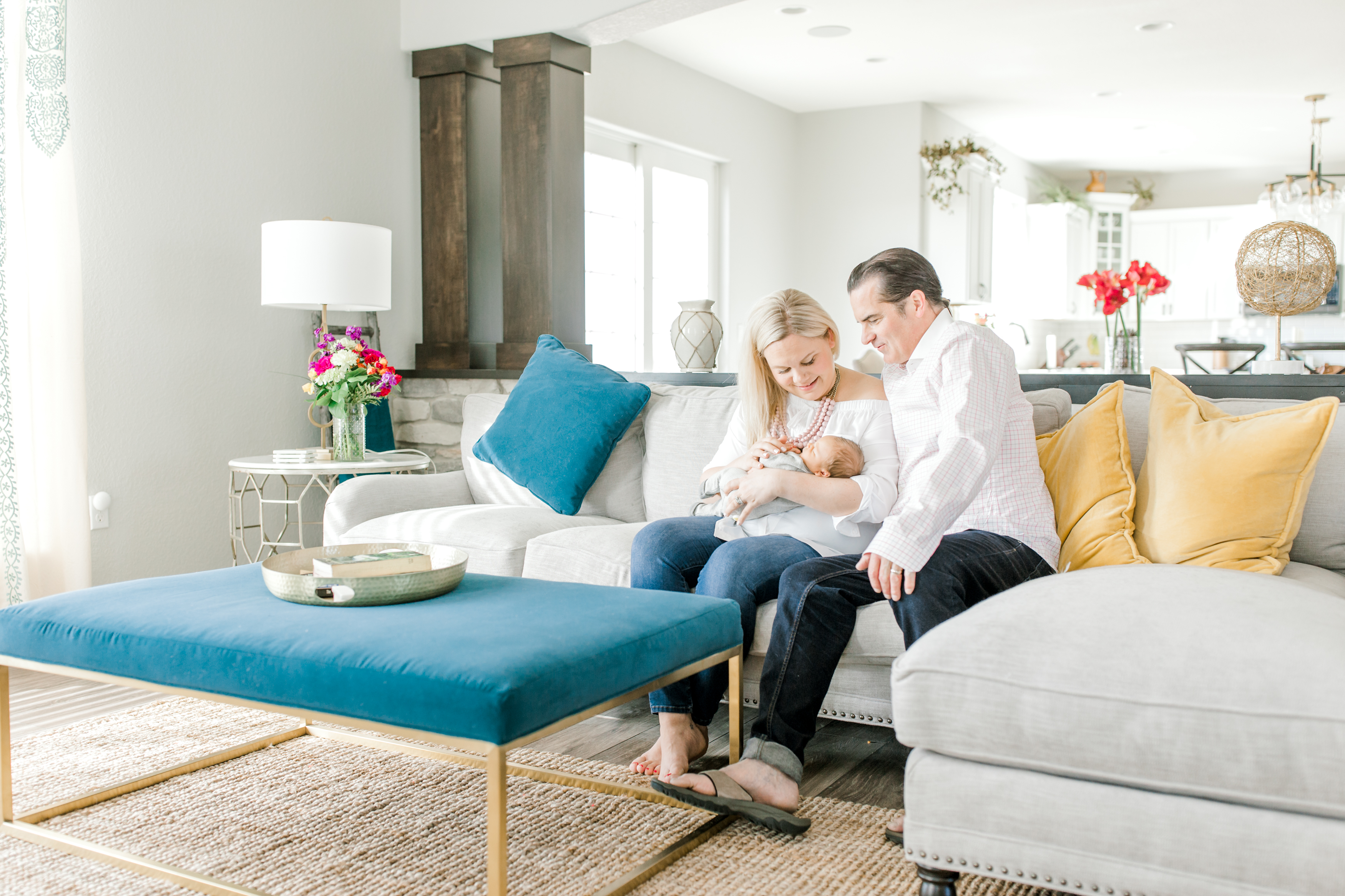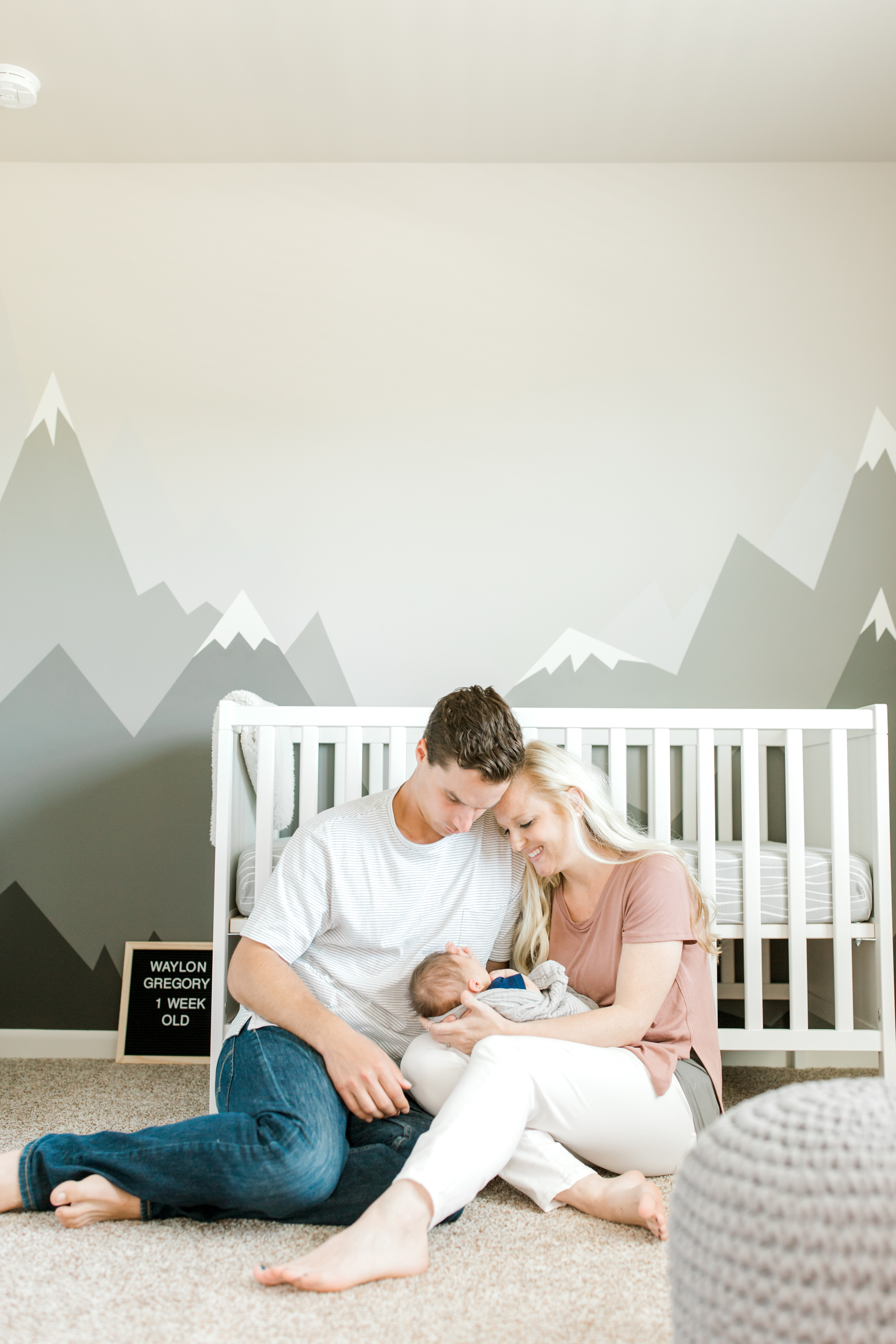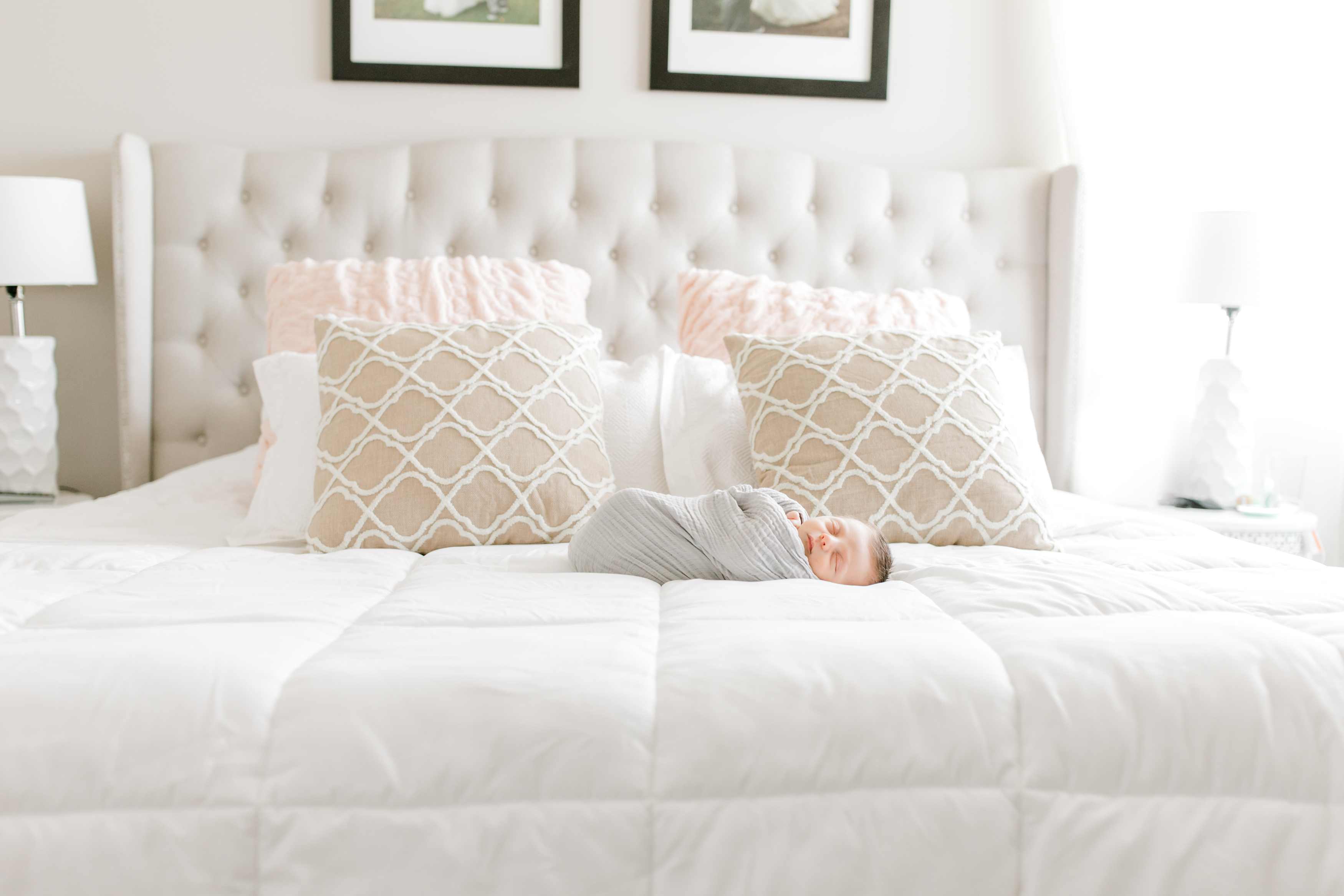For your session, we will likely use some combination of the following; your nursery, the master bedroom, the living room, the kitchen. But, with that said, delivering timeless, clean, beautiful images is my main priority, so lighting and neutral colors are very important to achieving that look. I have been known to use guest rooms or flex rooms in cases where that is the best light. I love it when clients send me cell phone shots of the rooms in their home so I can get a peek ahead of time! Take peek at some examples of how we found the best light available in these homes.