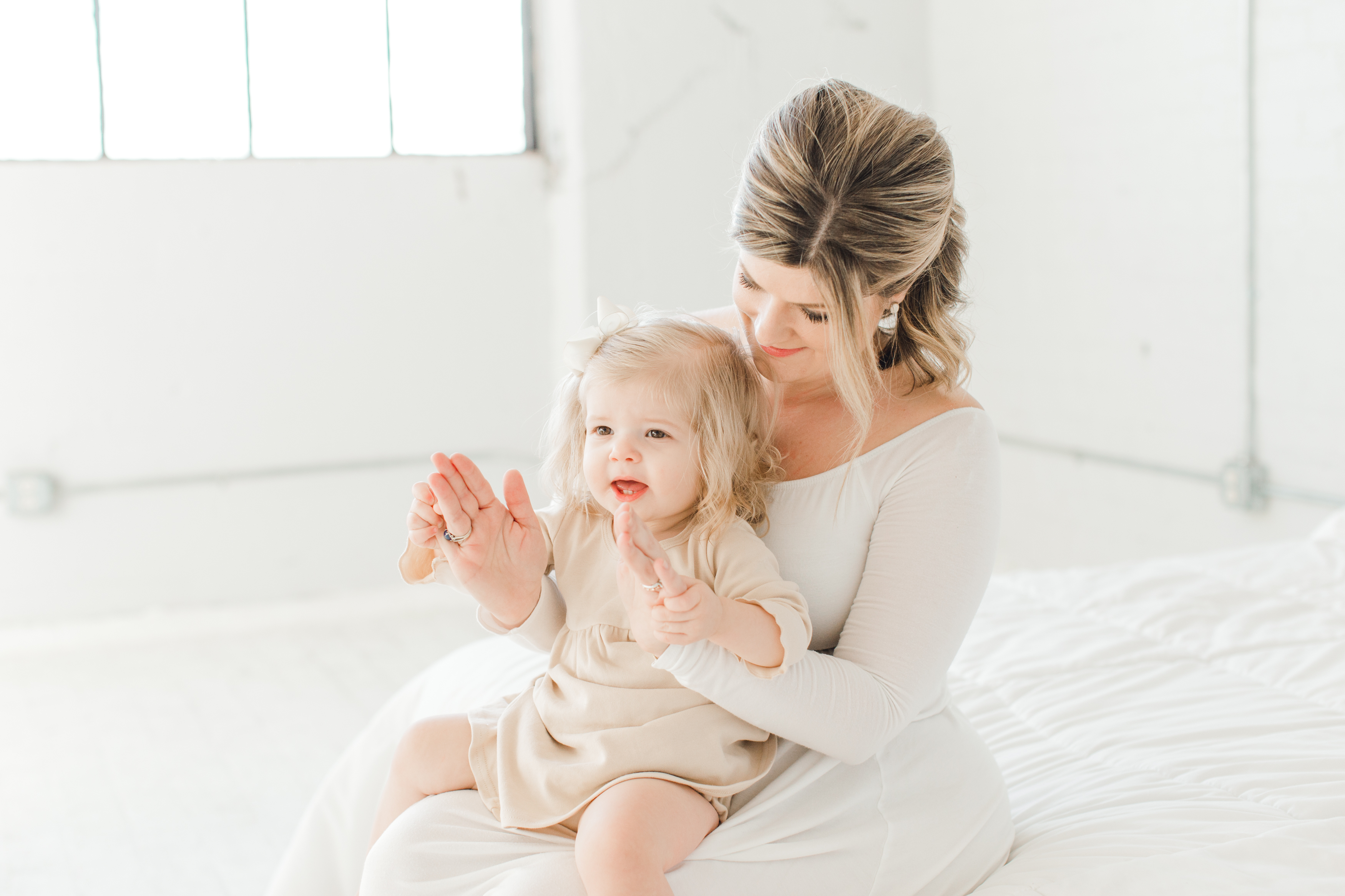 I met the Liedle family in Milwaukee WI, for their family session. This sweet family looks straight out of a magazine! Kate trusted me to style her family using all pieces from my client wardrobe and I absolutely love how it turned out! I love when Oconomowoc family photography families trust me with picking out their wardrobe because it makes that session more special and unique. And, of course, the location for this photo shoot was perfect. The natural light studio let this sweet family and their love for one another stay front and center of every image.